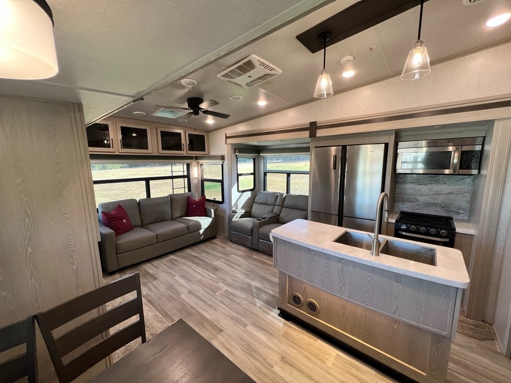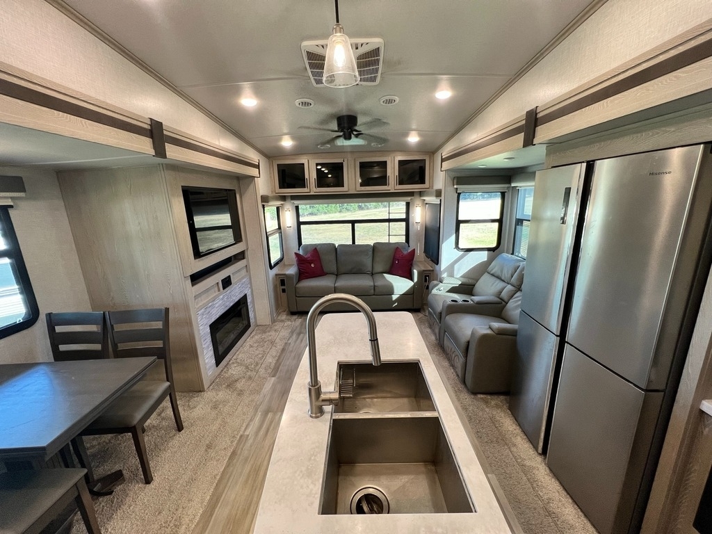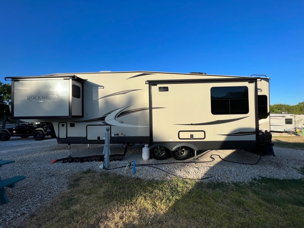 This 2021 Forest River Rockwood Signature 8288SB is 37ft 2in coupled with 3 Slides, 2 Awnings and there is plenty of room to sleep 6. This is a non-smoking RV and there has not been any accidents or water damage.
