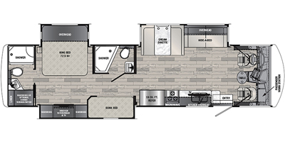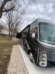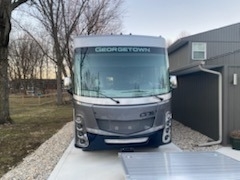 This Georgetown has an overall length of 34.92” and Comes Equipped with a Yamaha 5KW Gas Generator, 2 Slide Outs, 1 Awning, 2 AC Units and Plenty of Room to Sleep 8.