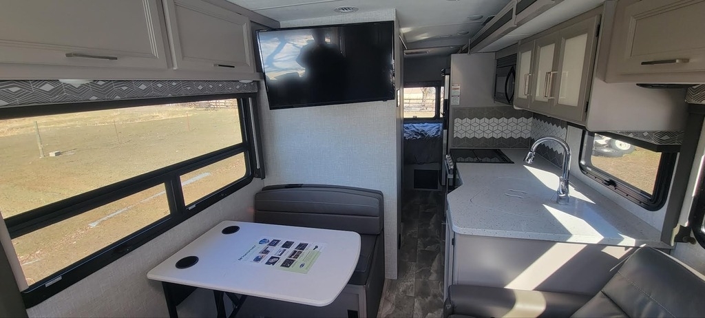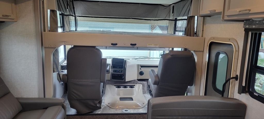 This 2022 Thor Motor Coach Windsport 29M Class A Motorhome is 35.75 feet long and comes equipped with a slide out, a patio awning, an air conditioning unit, and can sleep six people comfortably. This coach is powered by a Triton V8 gasoline engine paired with an automatic transmission. This coach sits on a Ford F53 chassis.