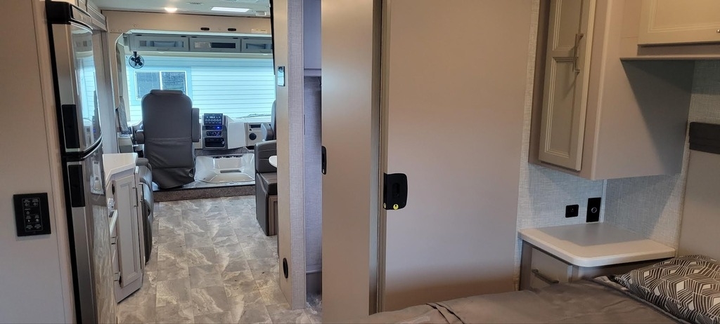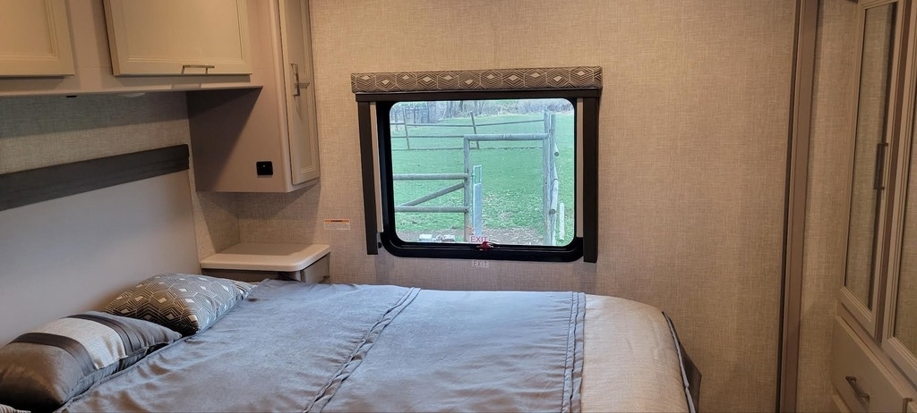 NEW, never licensed. We flew to Ohio and drove 2,500 miles back to Oregon. The New 7.3 Engine has more power and has no problem passing big trucks going uphill. Bonus it also gets better gas mileage. I wanted the exterior Kitchen and Bluetooth TV for great times outside. The central Air and Heating system are much quieter and efficient than our previous coach. The silent Vent Fans are fantastic. Has 100W Solar Charging System and Power inverter. This Coach was ordered from the Thor factory, after waiting months we at least got to enjoy the ride home. My wife passed away and I no longer have use of this Coach. Out of State buyers I will pick you up at the Medford OR Airport.