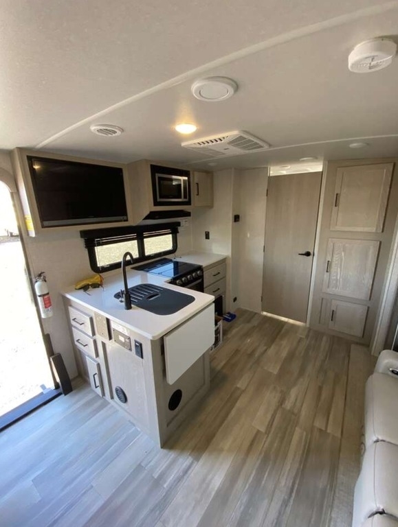 “Experience the great outdoors in style with this 2023 Forest River Rockwood Mini Lite M-2513S Travel Trailer. This lightweight and compact trailer is perfect for families and couples seeking adventure without sacrificing comfort. Key features include a spacious layout with a queen-size bed, a cozy living area, and a well-equipped kitchen featuring a refrigerator, microwave, and a three-burner stove. The bathroom includes a spacious shower and toilet, providing all the conveniences of home. Designed for easy towing, this model is equipped with a durable frame and a variety of thoughtful amenities, including a power awning, outdoor speakers and kitchen for al fresco dining, and ample storage both inside and out. With its sleek design and modern finishes, this travel trailer is not only functional but also aesthetically pleasing. The 2023 Rockwood Mini Lite is perfect for weekend getaways or extended trips, providing all the comforts needed to make lasting memories.”