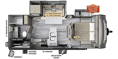 This Rockwood Mini Lite has an overall length of 25.83 feet and comes equipped with 2 power retractable slide-outs, 1 power retractable awning, 1 A/C unit, an outdoor kitchen, and plenty of room to sleep 4. This unit has been well-maintained.