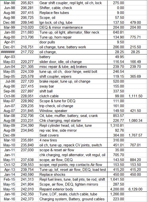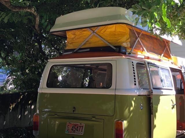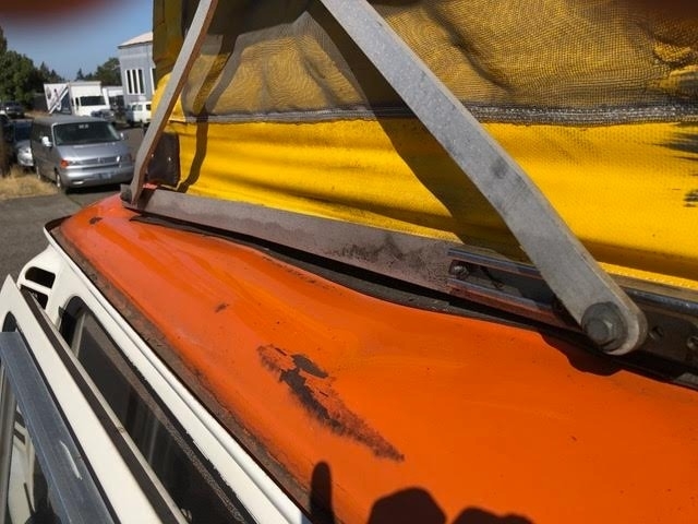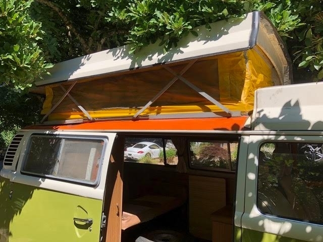 It has a reconstructed Oregon title. Not from any collision, but in 1991 a tree leaned over in an ice storm from all the weight and settled on the bus, putting a dent in the roof, and several small holes in the fiberglass top. State Farm could not find a replacement roof, so they totaled it. I bought it back and had a local body shop repair the holes and respray. The dent remains but is not visible except when the top is up.