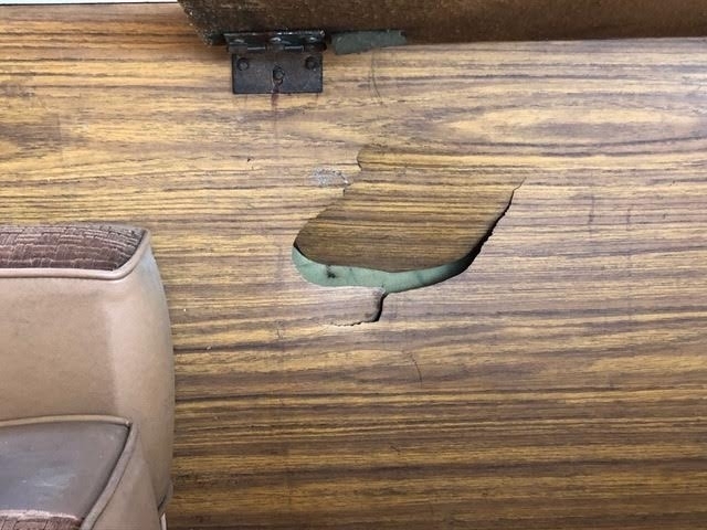 12. Two breaks in the faux-wood laminate interior