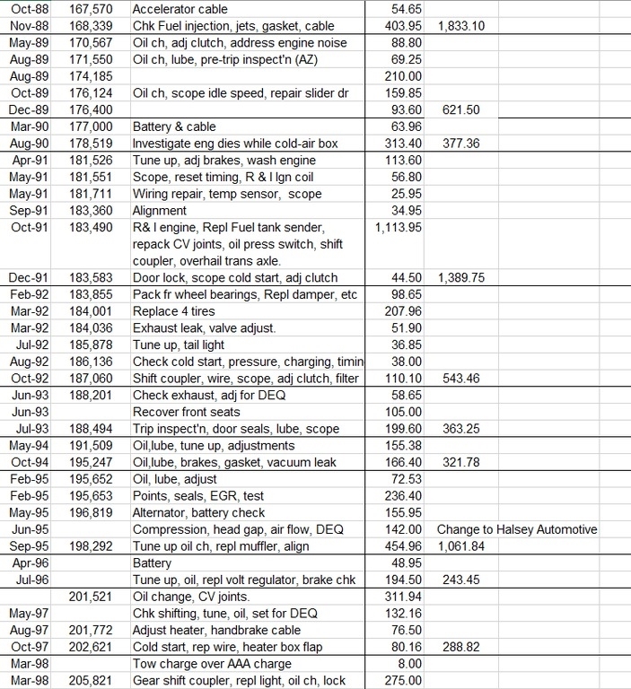 247,500 miles (body) c. 167,000 miles (engine). Original engine replaced prior to 1982 (at around 80,000 miles) with a 1980 2,000cc fuel injection version.