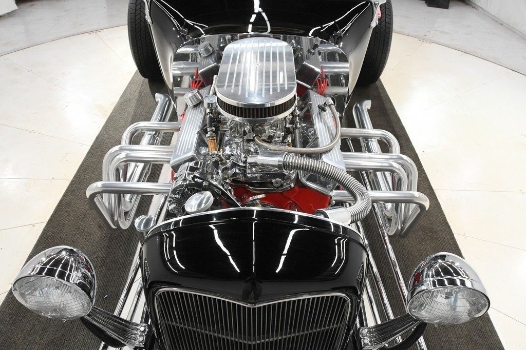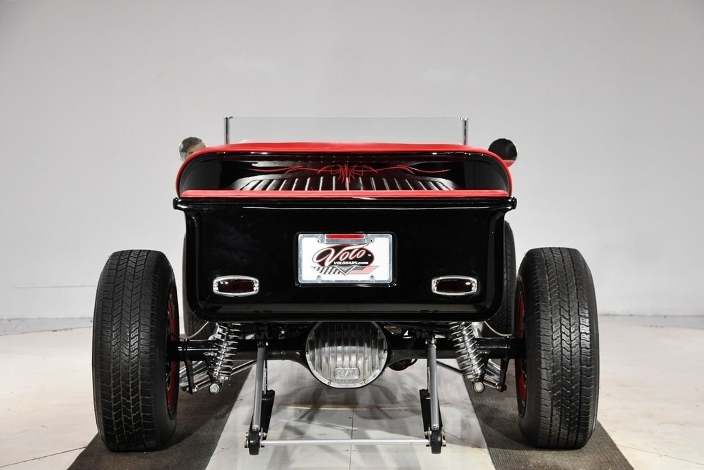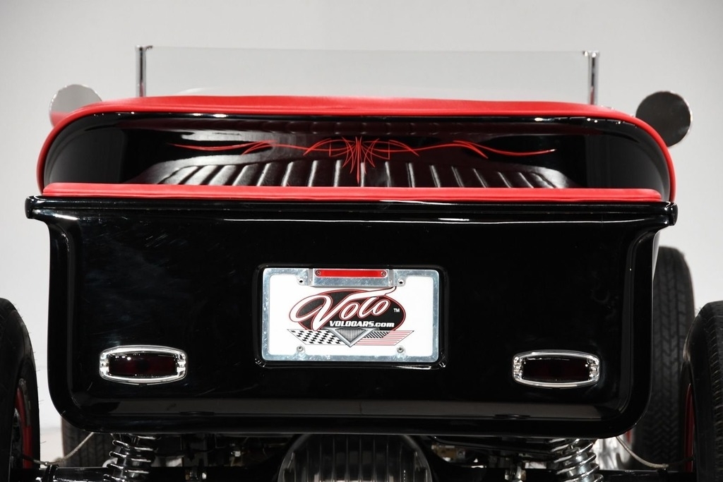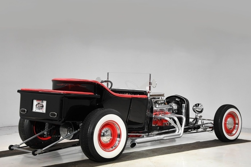 “This 1923 Ford is a stunning, fully rebuilt frame-off show car with only 4,500 miles! Built on an extended wheelbase chassis, every component is new or rebuilt, including the 327 Chevy small block, 350 transmission, and 9-inch rear. The exterior is flawless with a brand-new extended fiberglass body, functional door, 20-inch pickup bed, glossy black paint, polished billet trim, chrome accents, and wide white Coker Classic tires—turning heads wherever you go.
