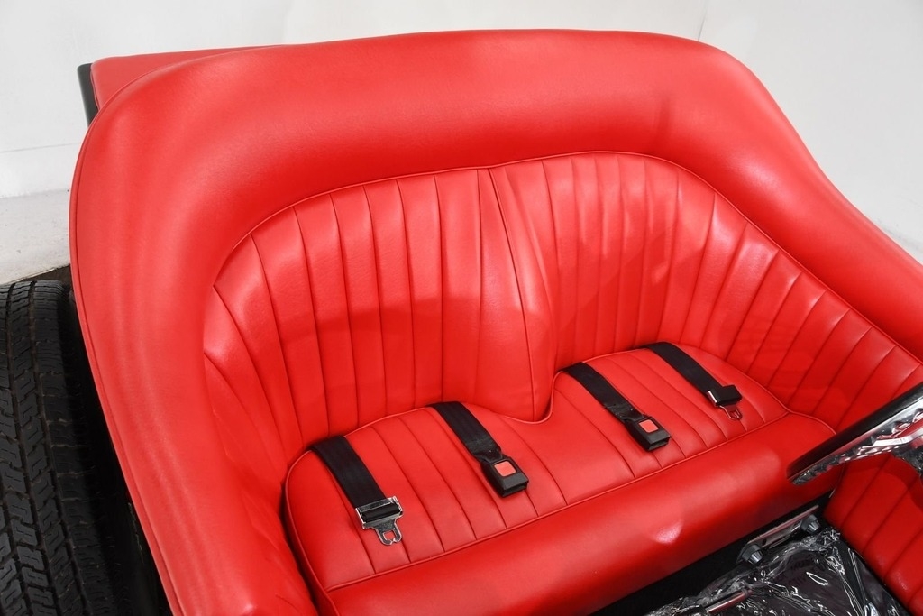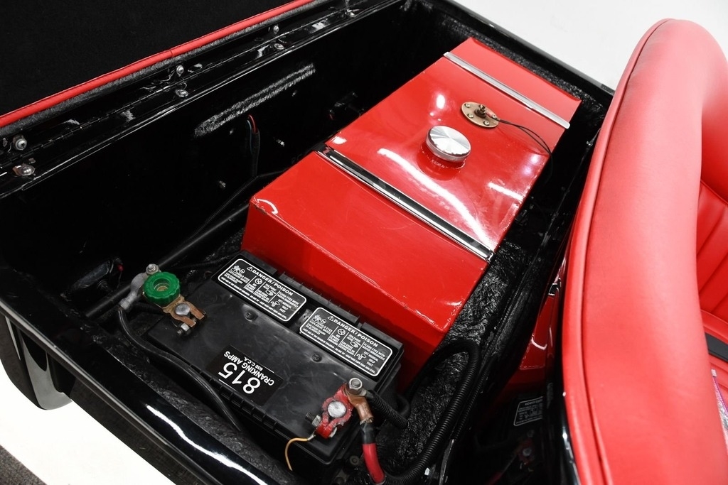 Powered by a rebuilt 327 Chevy small block, 350 transmission, and 9-inch rear, this isn’t your typical T. It is shown with a striking black exterior and a red interior. This vehicle has been well-maintained, garage kept, smoke free and has had only 2 owners.