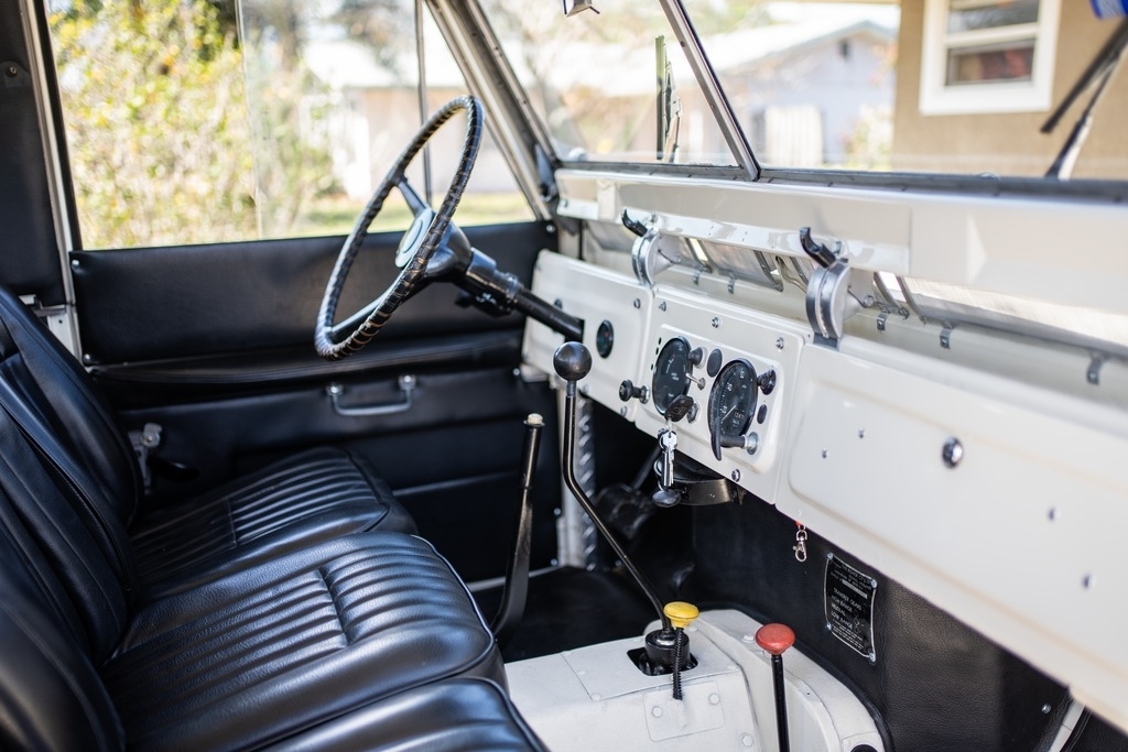 This All Original Numbers Matching ’67 Land Rover Series is powered by a 2.25L Diesel Engine, paired with a 4-Speed Manual Transmission. Shown in a Ivory Exterior with a Black Interior. This SUV has 62,548 Original KM (Equal To 38,817 Miles)