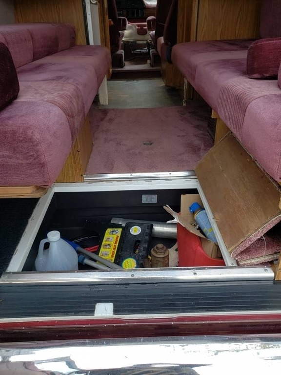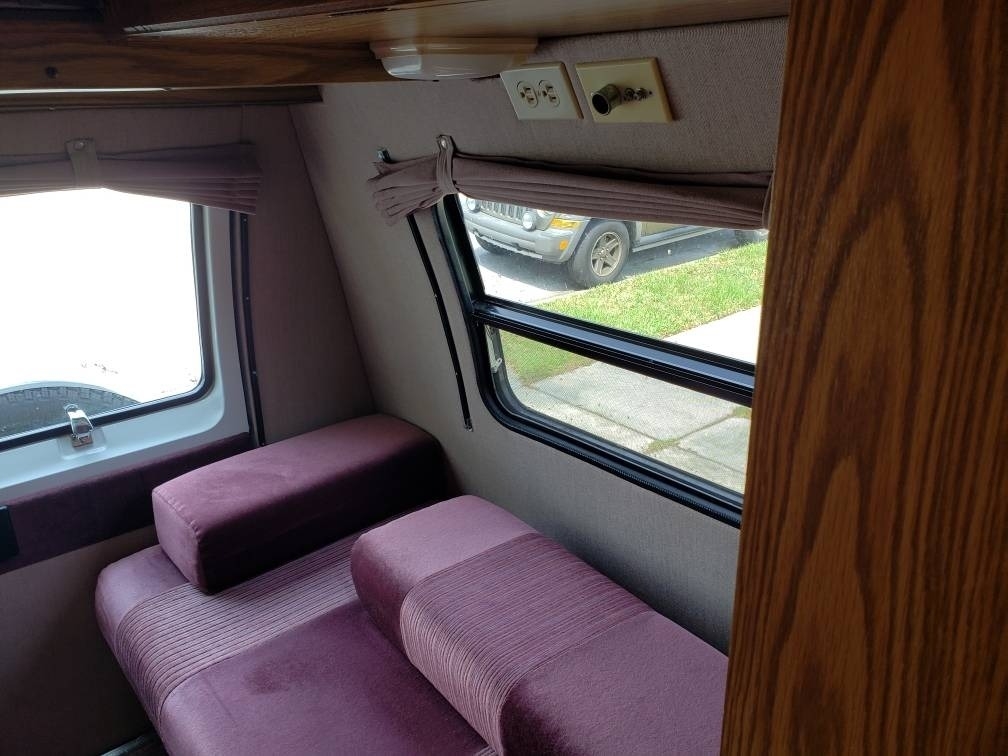 battery for lights etc, toilet, table, rotating front seats, two small beds