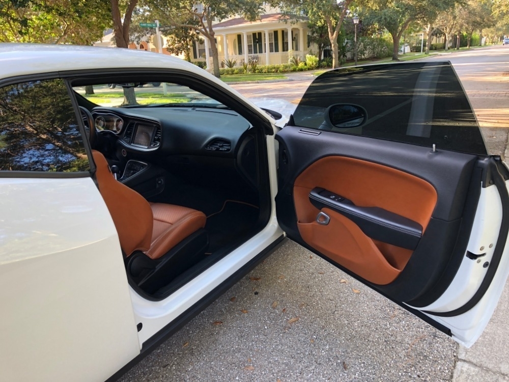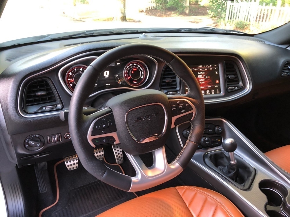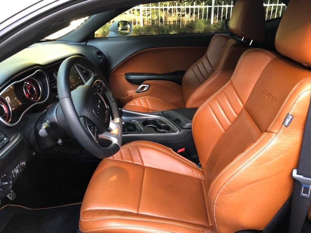 This Challenger SRT is powered by an 6.4L V8 Hemi gas engine, paired with a 6-Speed Manual Transmission. There is only 8,050 miles on this Challenger. This Beauty is shown in White and has a Black Interior.