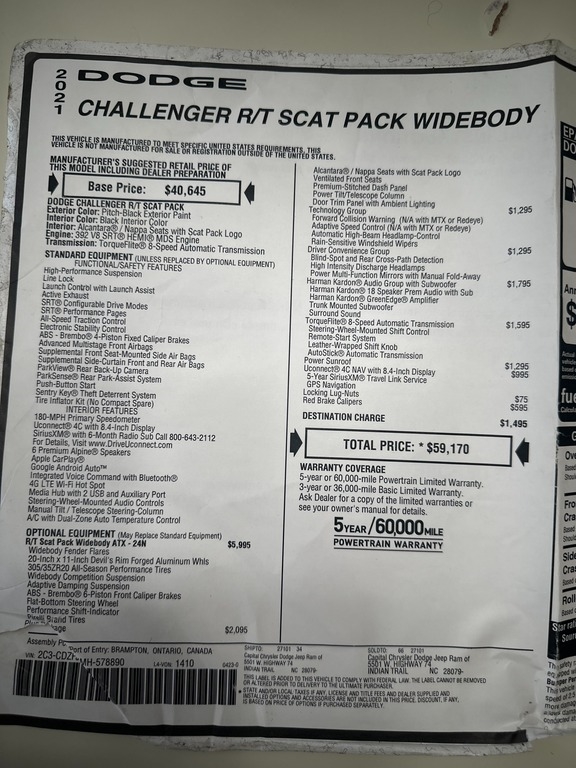 This 2021 Dodge Challenger ScatPack is powered by a 6.4L 485