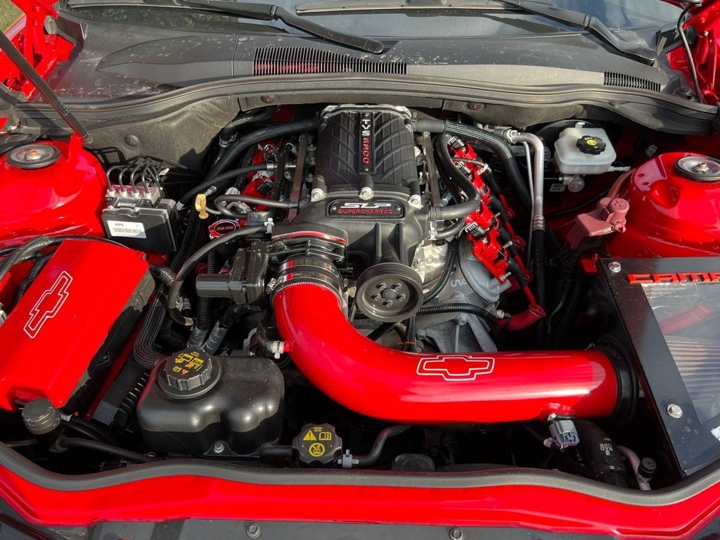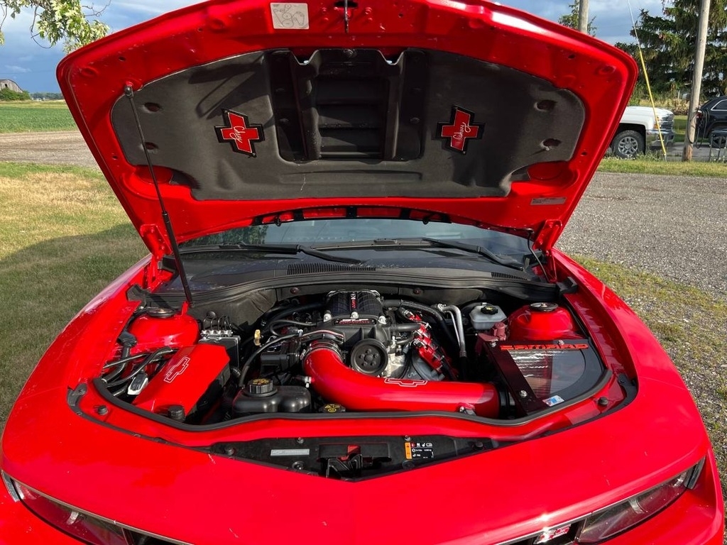 This 2015 Camero Is Powered by A Supercharged 6.2L V8 Engine Paired with A 6 Speed Automatic Transmission with Only 22,217 Miles. This Chevy Has a Red Exterior and A Gray Interior.