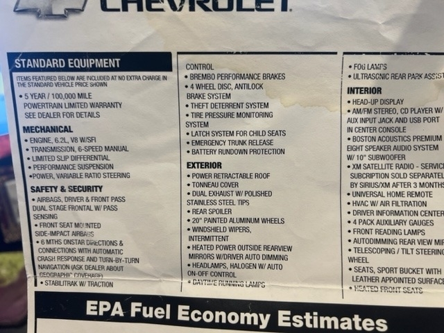 Under the hood, you'll find the heart of a beast—an exhilarating 6.2-liter V8 engine, delivering an adrenaline-pumping 426 horsepower. Whether you're cruising down the highway or tearing up the track, the Camaro Synergy offers unmatched performance and thrills.