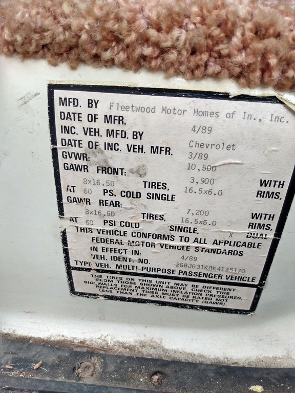 This 1989 Fleetwood Van is powered by a 5.7L 350 V8 Gasoline Engine combined with a 4-speed Automatic Transmission on a Chevrolet G30 Chassis, with 93,000 Miles. The overall length is 24 feet and comes equipped with a Solar Paneled Generator, 1 Awning, 1 A/C unit and plenty of room to sleep 5. This is a non-pet/non-smoking RV and there have not been any accidents or water damage.
