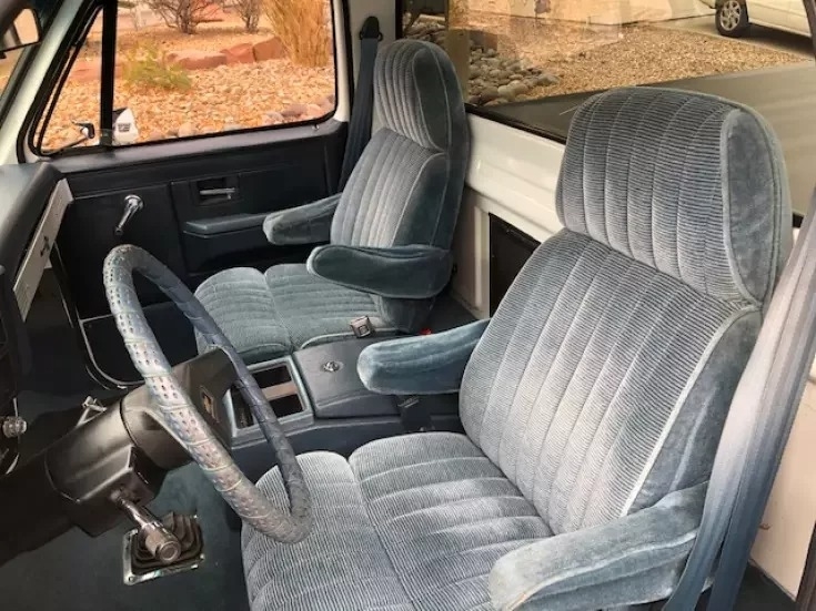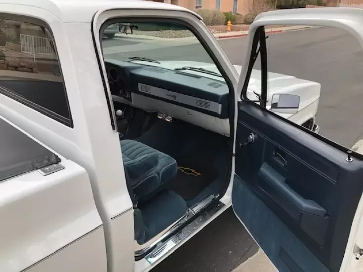 This 1984 Chevrolet C-10 Custom Deluxe is powered by a 5.0L 305 V8 Engine, paired with a 3-Speed Manual Transmission and has 39,000 Original Miles. This Classic Short Bed is shown in a White Exterior with a Blue Cloth Interior and has been both non-smoking and garage kept, is super clean.