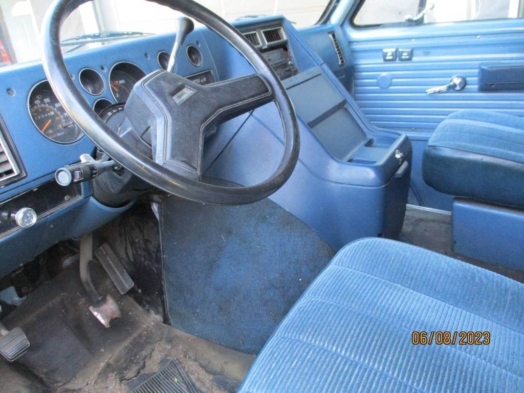 This GMC Is Powered by A 454 V8 Factory Engine and Is Paired with A Rebuilt 3-speed Automatic Transmission with 112,000 Miles. Shown In a Blue Exterior with A Blue Cloth Interior.