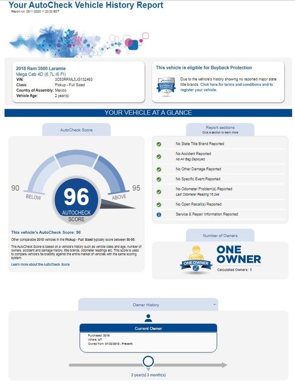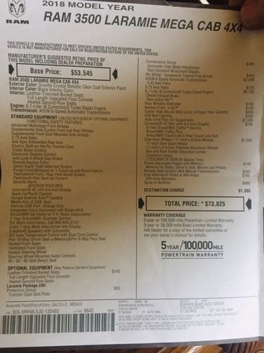 This ’18 Laramie is powered by a 6.7L, I6 Cummins Diesel Engine with 21,481 miles on it, paired with an Aisin 6-Speed Automatic Transmission. This beauty is shown in Metallic Granite with a Black Leather Interior and non-smoking.