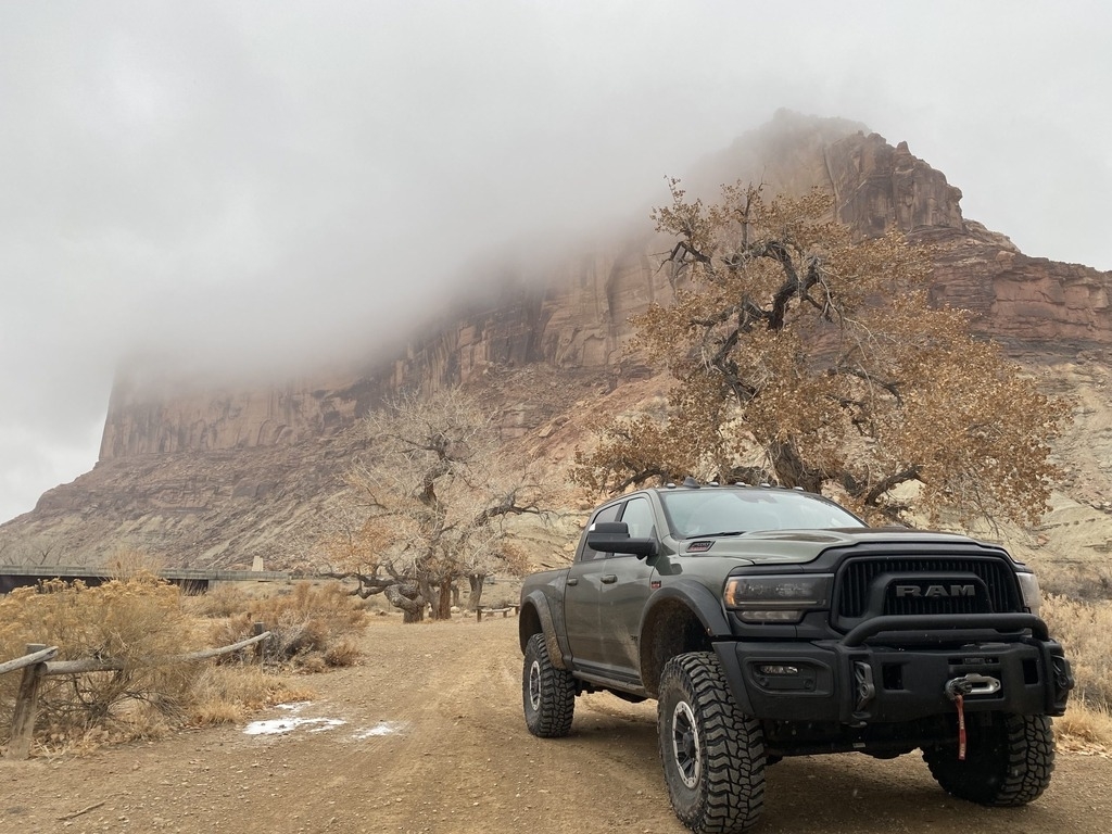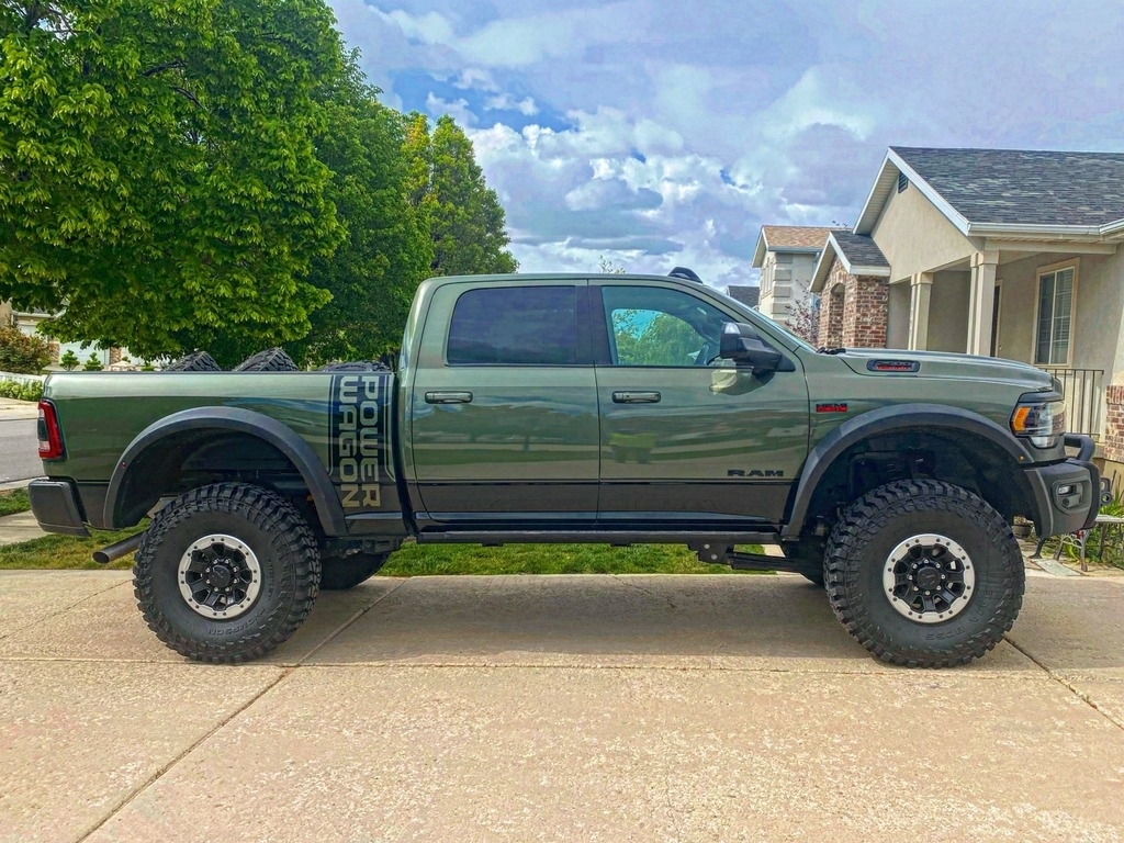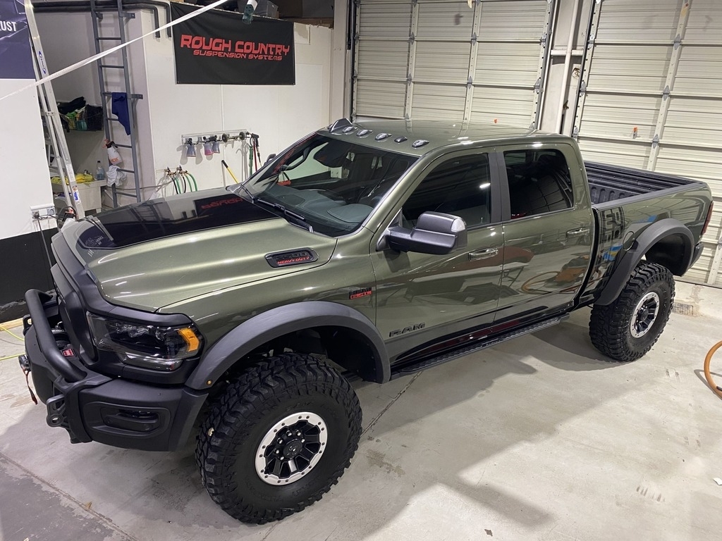 AEV’s dual sport suspension kit was installed which pushes the axle forward 1.6” and provides 3” of lift. This kit in combination with AEV’s cutout fender flares makes it possible to clear 40” tires even while fully flexed. The Powerwagon’s factory springs are retained leaving the ride feeling exactly like stock. These springs are much softer than other ram trim levels which allow the truck to flex very easily while Offroad.