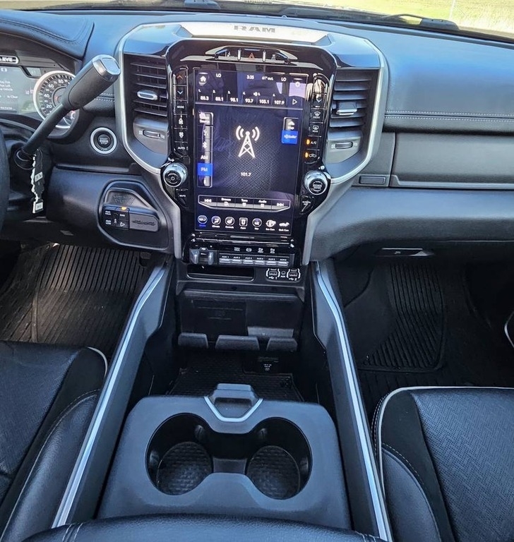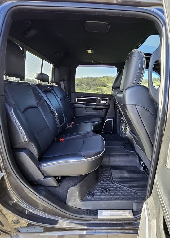 This Ram is powered by a 6.7L I6 turbocharged diesel engine paired with a 6-speed automatic transmission. It has 63,200 miles and is shown with a Granite Crystal Metallic exterior and a black leather interior. This vehicle has been well-maintained.