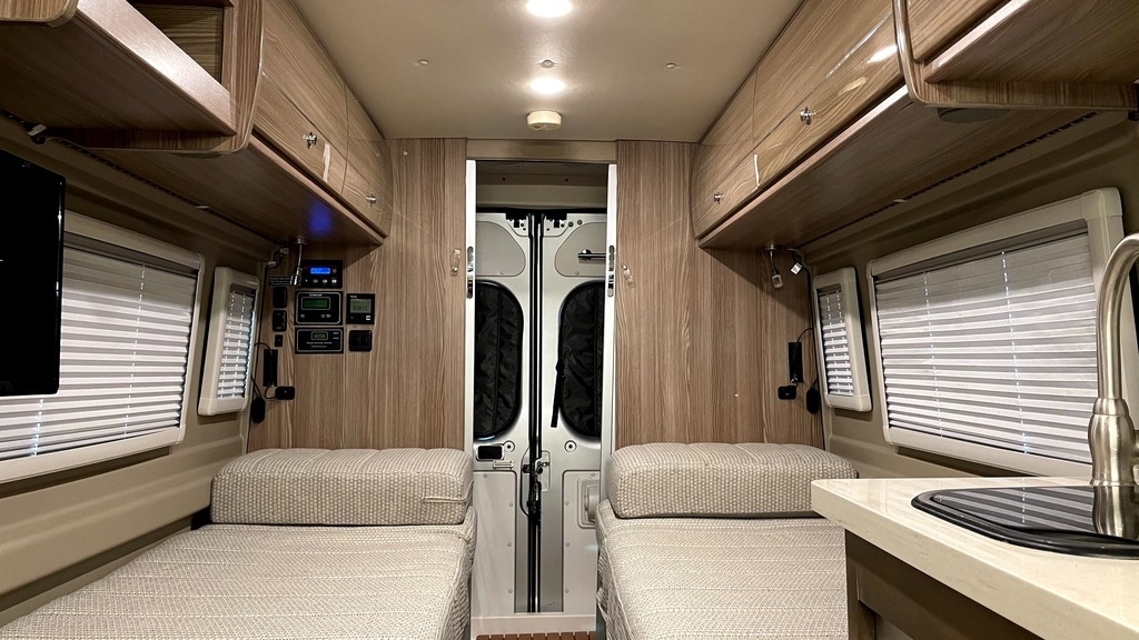 and Travato logos for a cleaner, more stealthy look. Easier to sleep in when