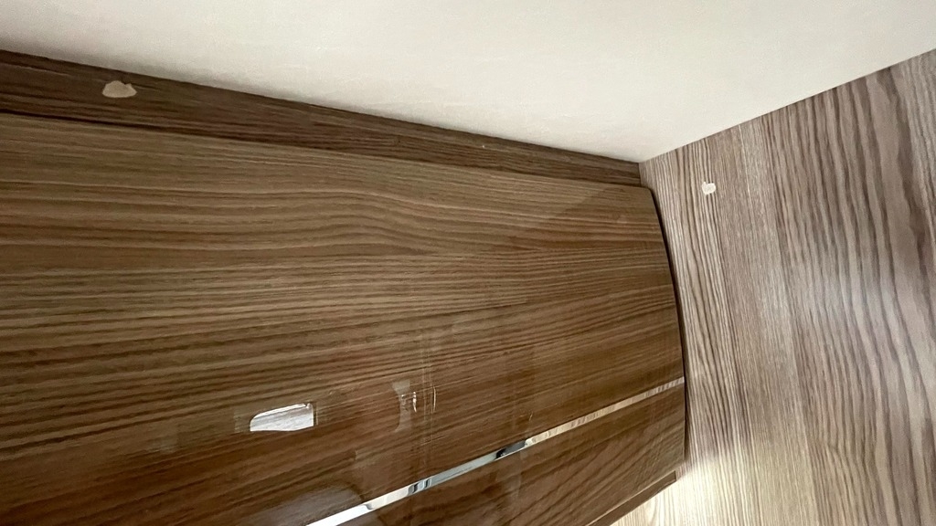 spots (the size of a pinky nail and a thumb nail) where the wood panel peeled