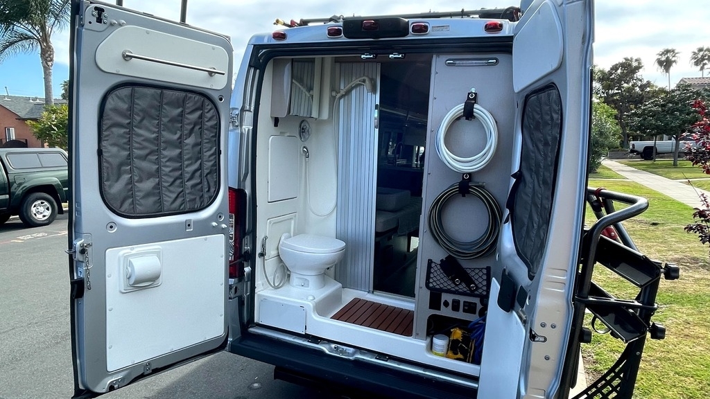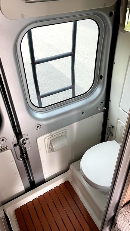 extra sewer hose and a toilet cleaning hose (both stored on roof), a HEPA hand