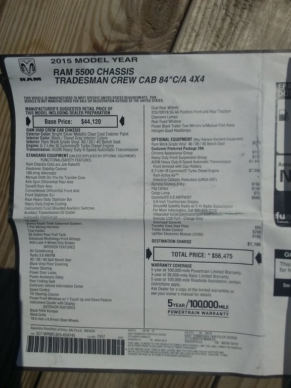2015 RAM 5500 HD Chassis Tradesman/SLT/Laramie Chassis