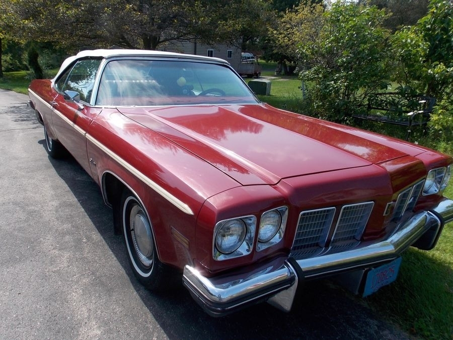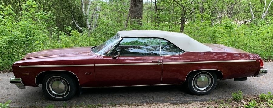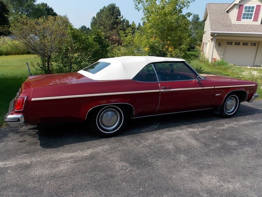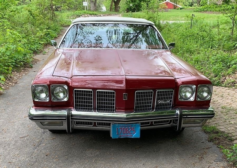 This 1975 Oldsmobile Eighty-Eight Convertible is powered by a 350 V8 gasoline engine paired with an automatic transmission. This Oldsmobile is shown with a red exterior and a maroon interior. The vehicle was purchased from the original owner who owned it for 36 years and was the service manager at a small Oldsmobile dealer all that time. 1975 was the last year Oldsmobile made a convertible and only produced 7,181 convertibles which ensures it will always have high demand and its value will only increase as it nears its 50th birthday.
