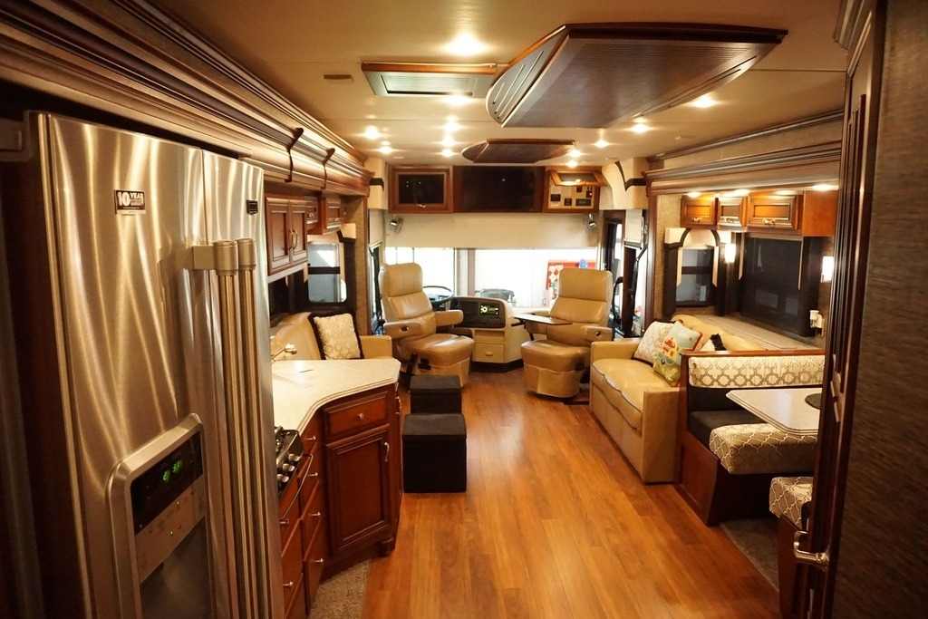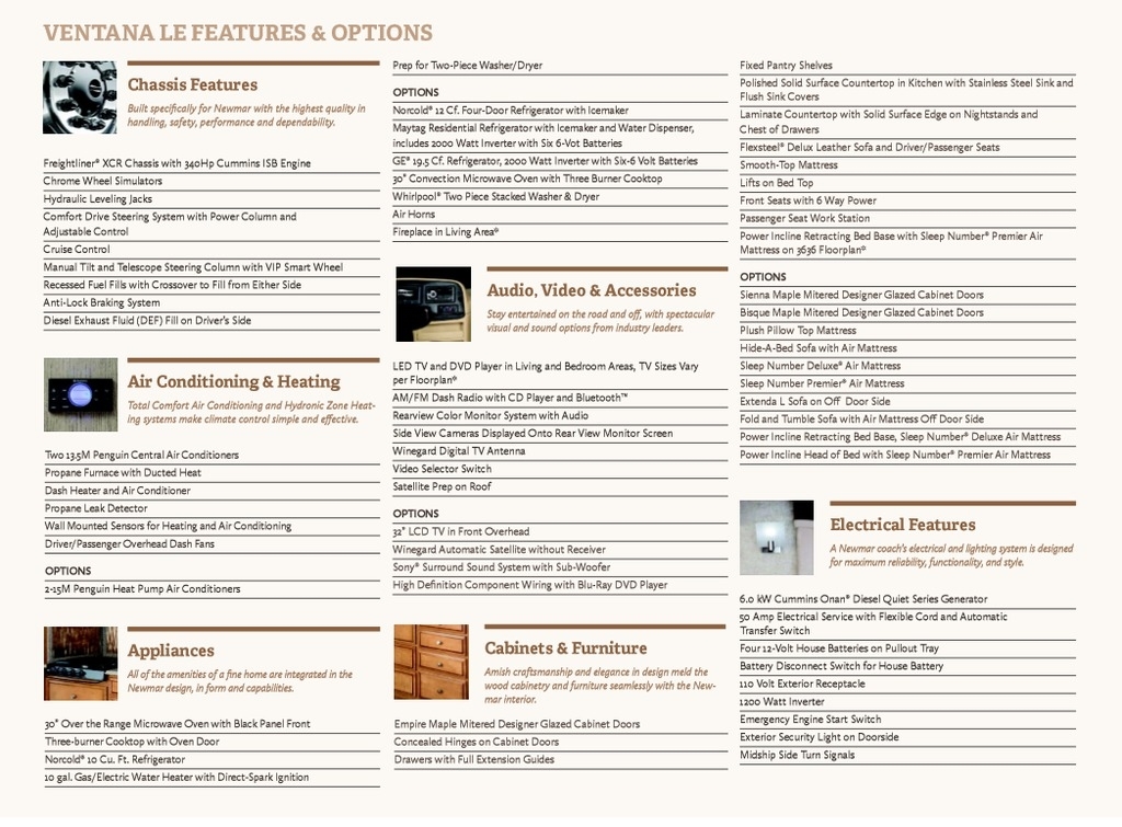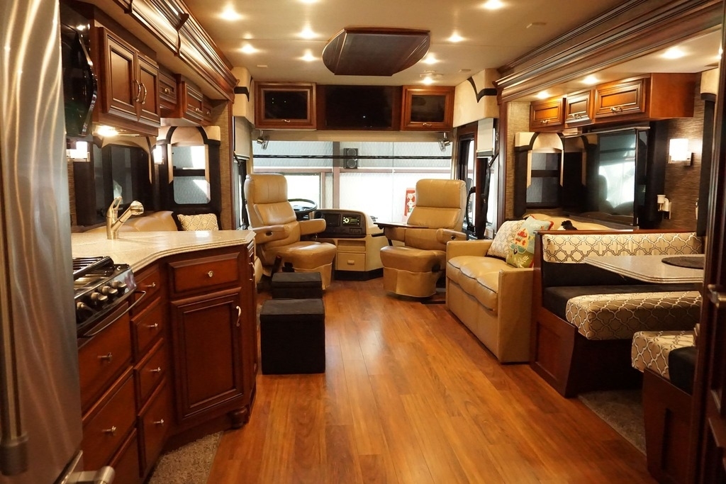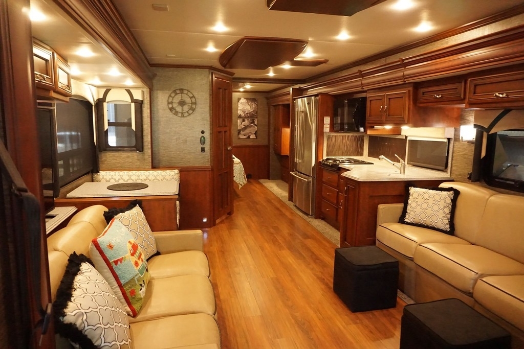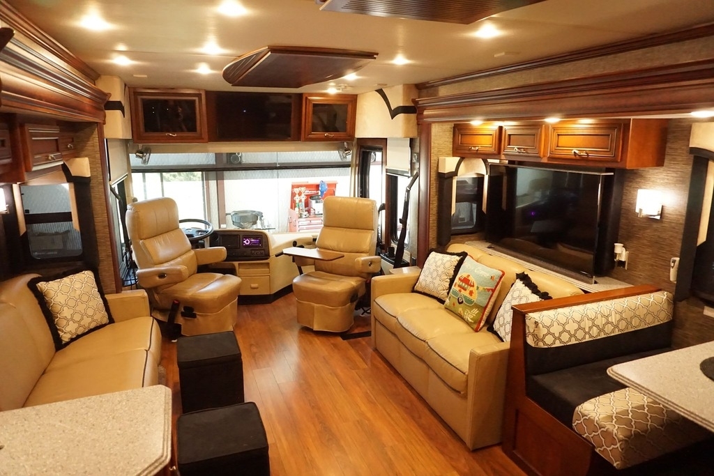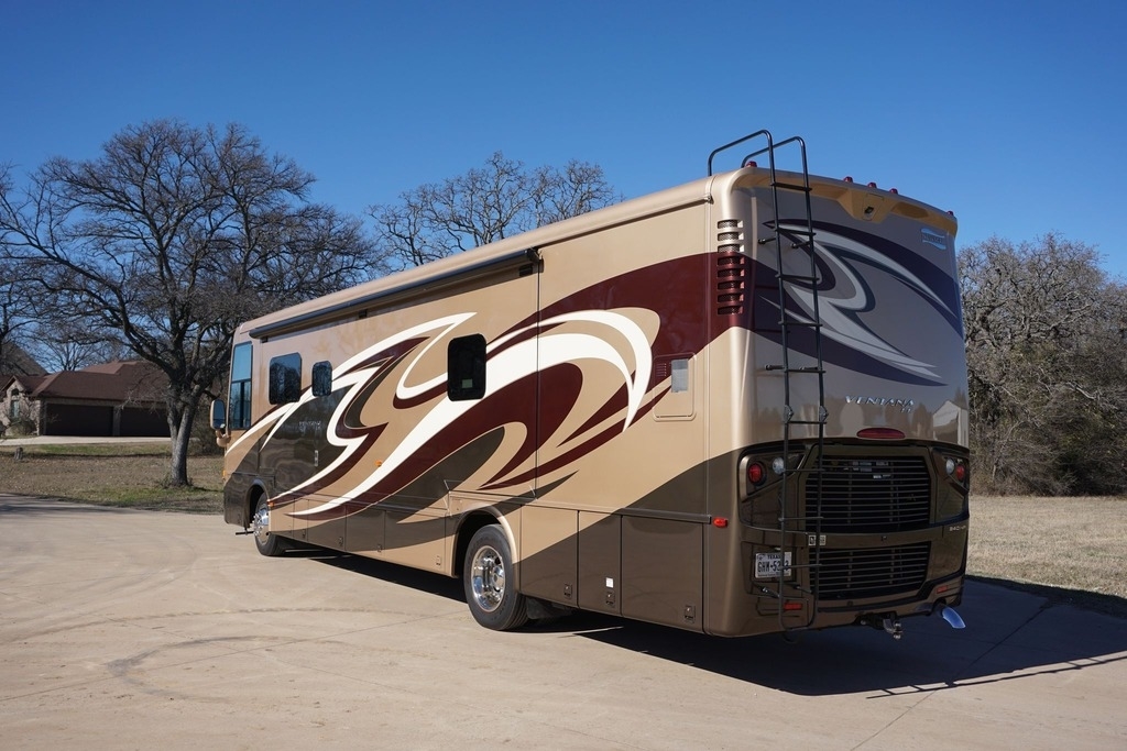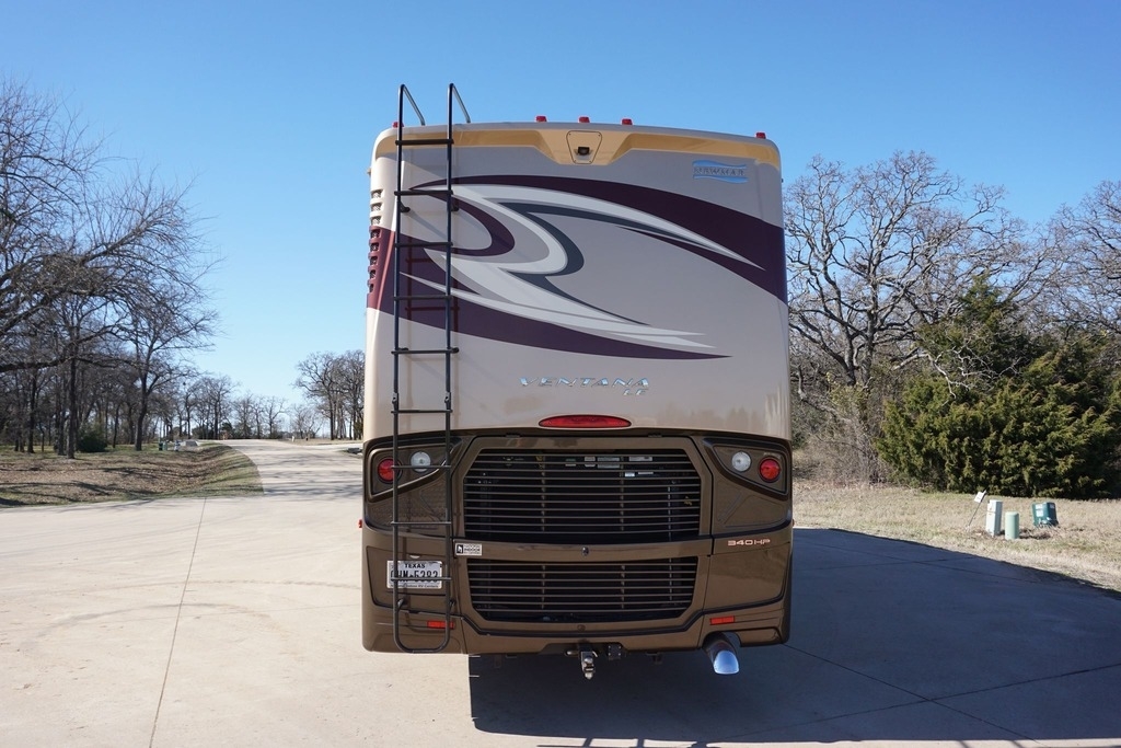 This 2015 Newmar Ventana is powered by a I6 6.7 L Diesel Cummins Engine combined with a 6-speed Automatic Transmission on a Freightliner Chassis, with 24,000 Miles. The overall length is 38 feet and comes equipped with an 8.0 Kw Onan Diesel Generator, 3 Slide Outs, 2 Awnings, 2 Roof A/C units and plenty of room to sleep 6.