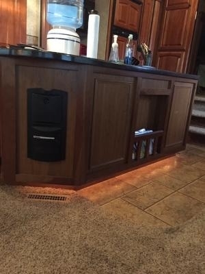 Island with Double Sink and Spray Faucet with LED Lighting at Base