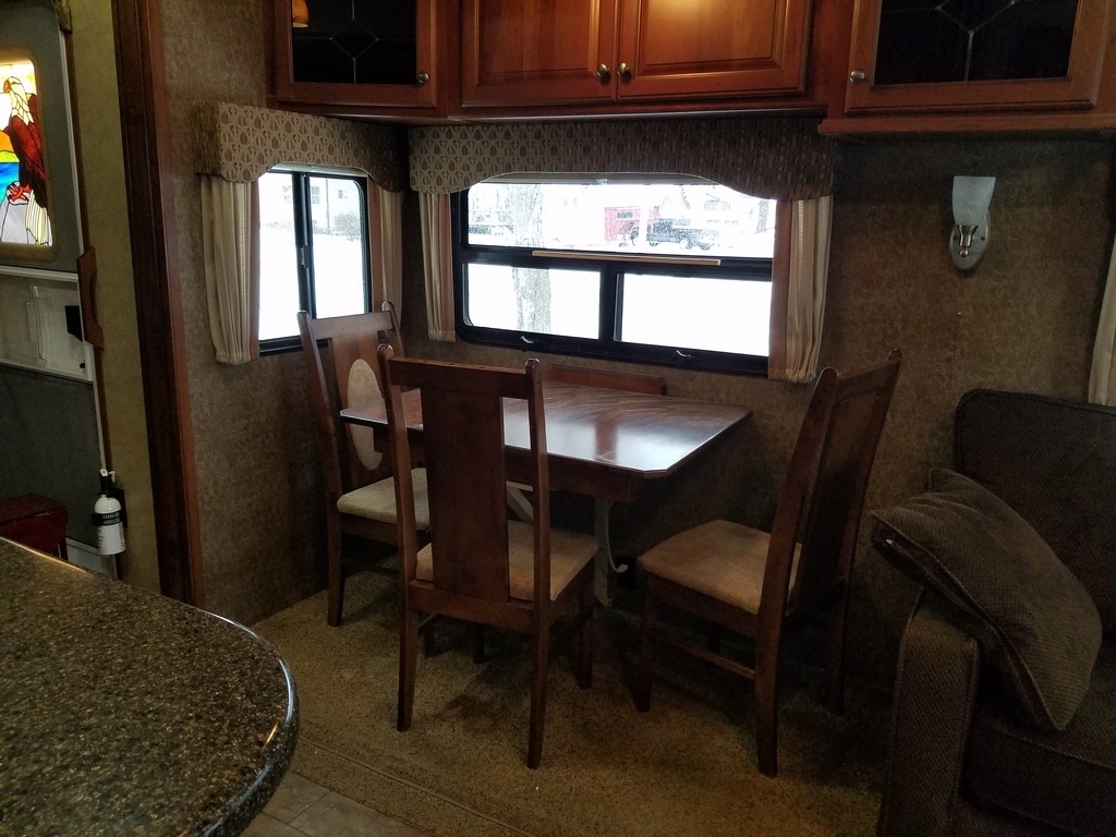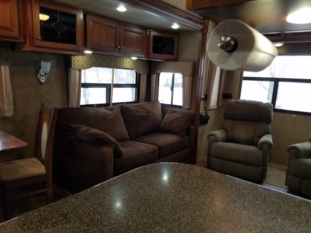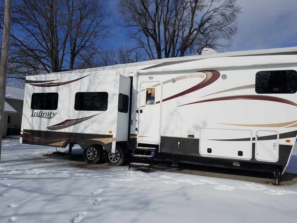 This 2012 Dutchmen Infinity has an overall length of 38 feet and comes equipped with 4 Slide Outs, 1 Awning, 2 A/C units and plenty of room to sleep 4.