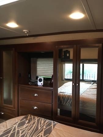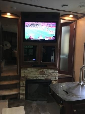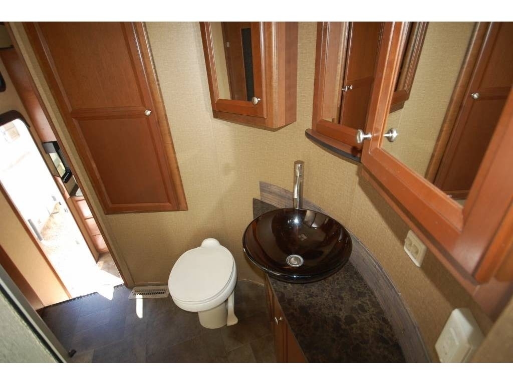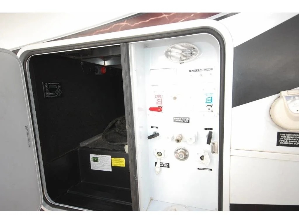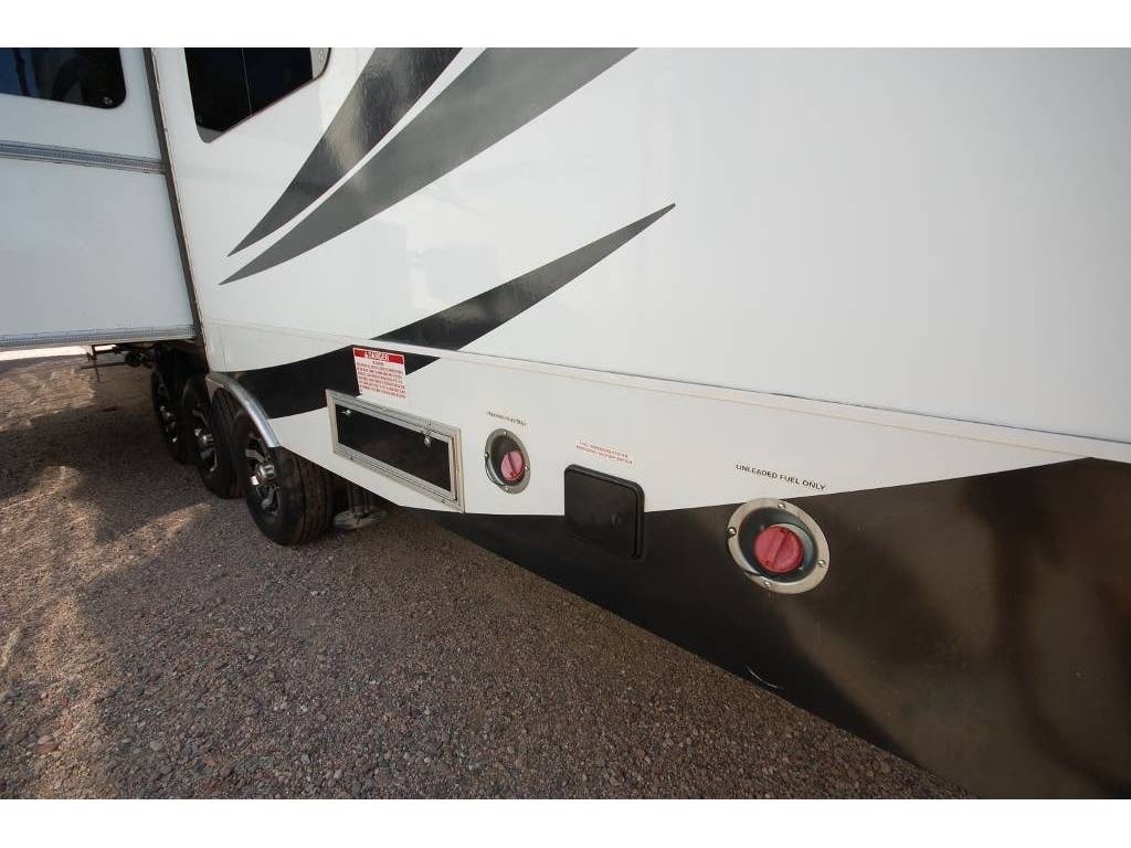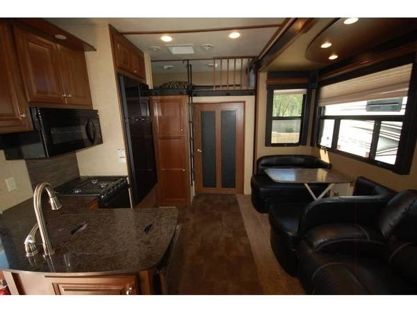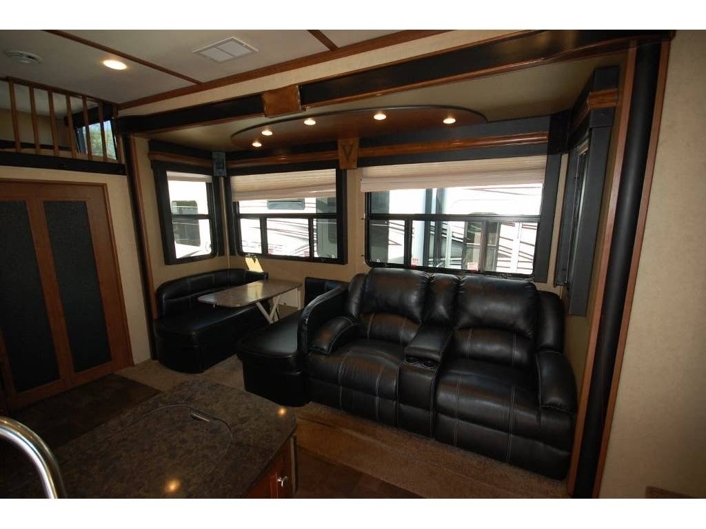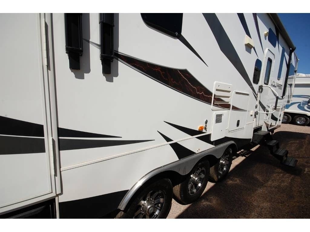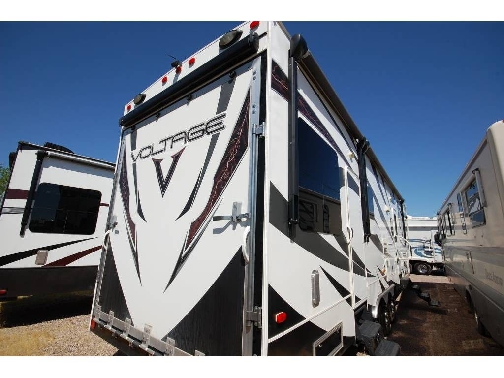This Deluxe 2013 Dutchmen Voltage has a length of 36 feet and comes equipped with 2 Slide Outs, 2 Electric Awnings, Dual A/C units and plenty of room to sleep 6. Featuring a 10 ft Garage w/ Queen Bed, 27” TV, Drop-Down Table, and ½ Bath and A Drop-Down Ramp for Outdoor Patio!