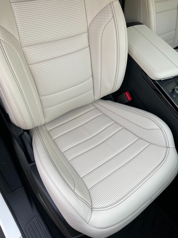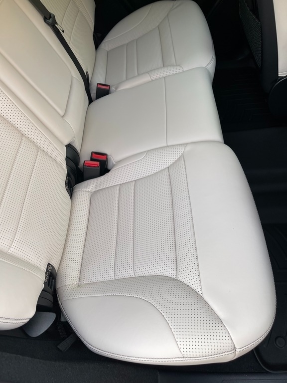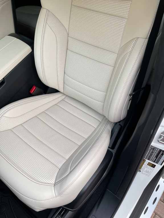 has a Polar White Exterior with a Black w/Grey Stitching Premium Leather