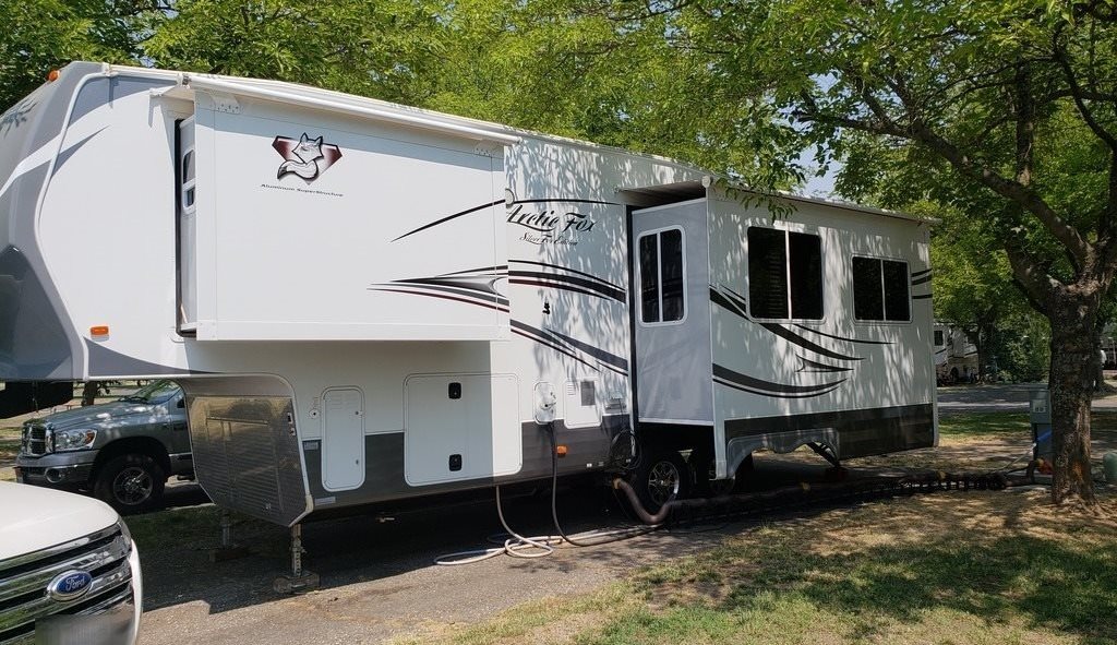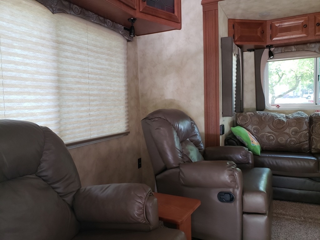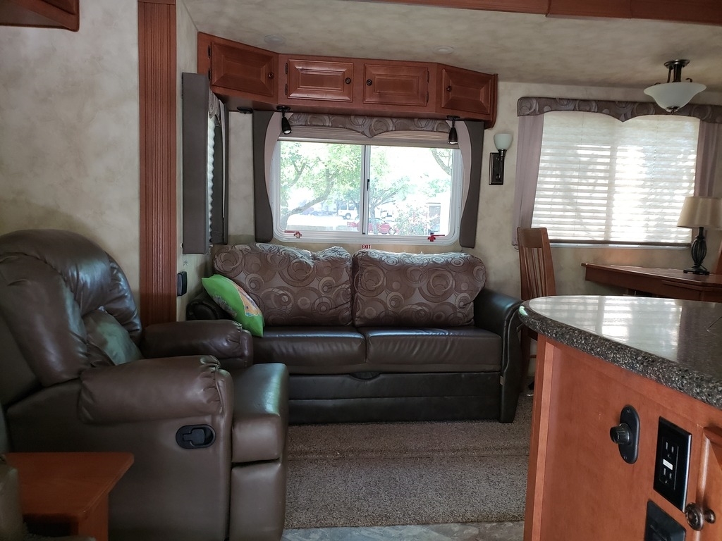 This fifth wheel RV is 33 feet and comes equipped with 2 Slide Outs, 1 Awning, 1 A/C Unit and sleeps 6. This is a non-pet/non-smoking RV and there has not been any accidents or water damage.