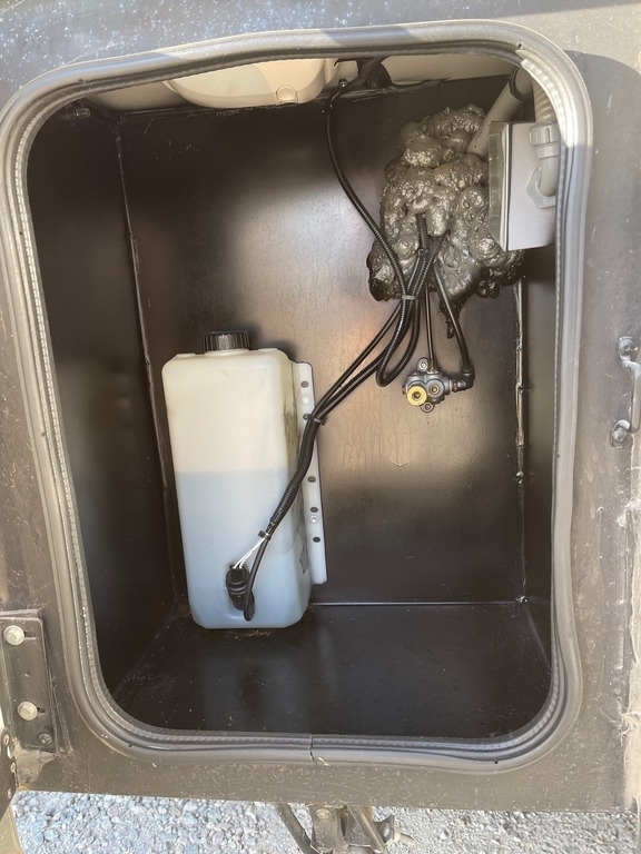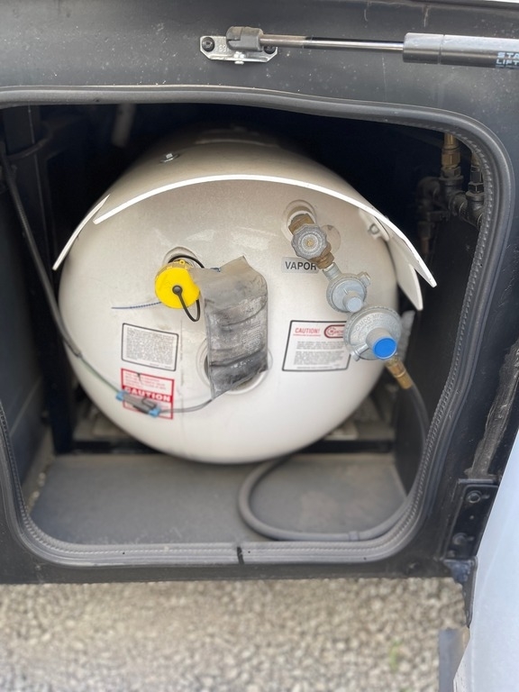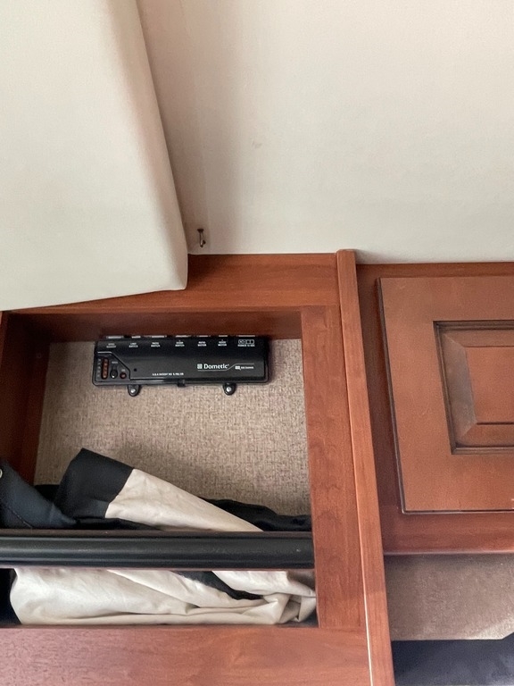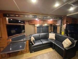 TVs, roof mounted air conditioner, generator, L shaped couch and bar stools. It
