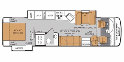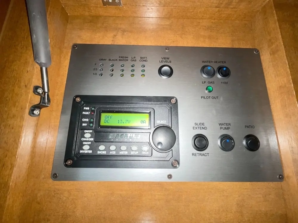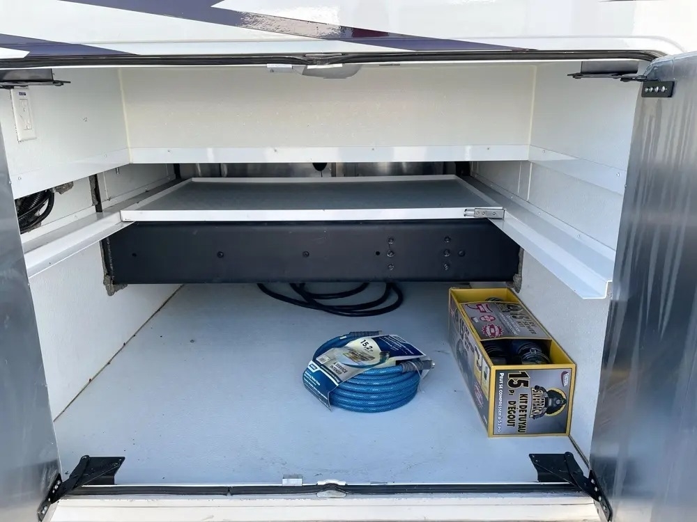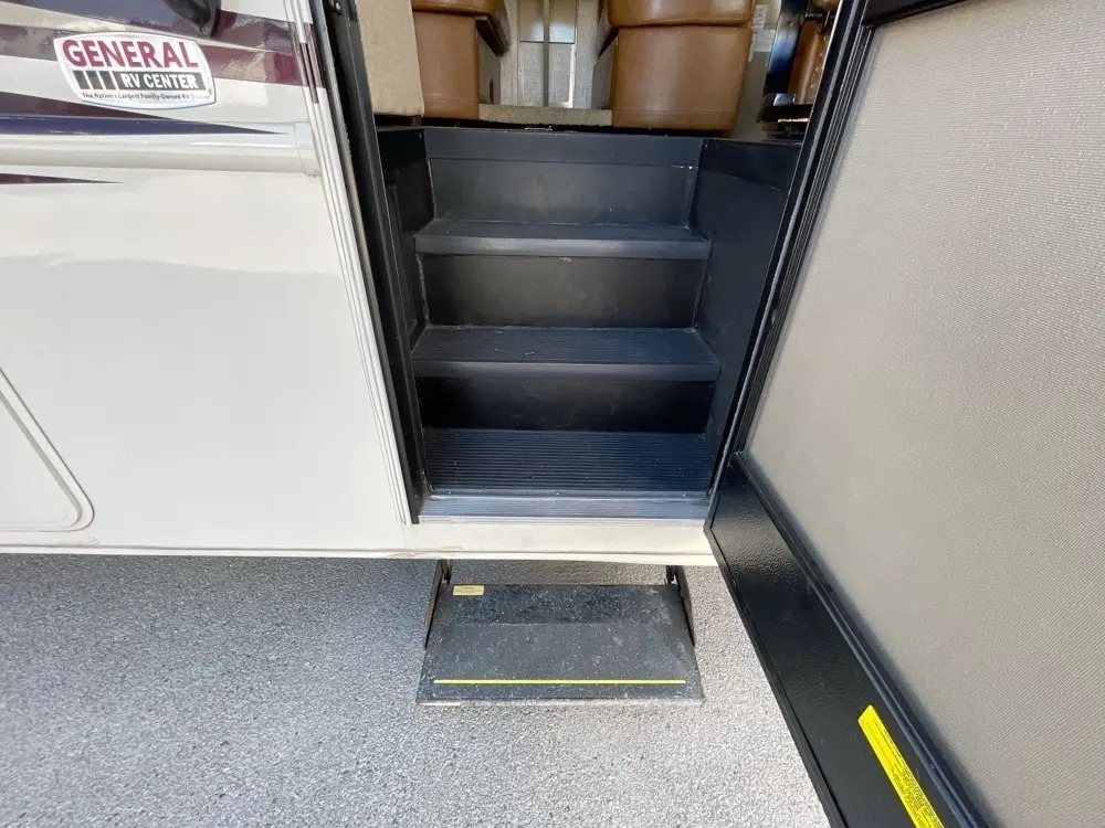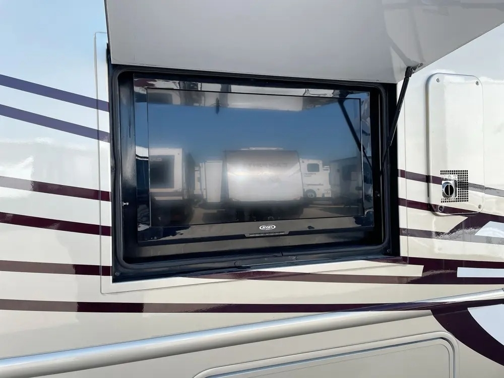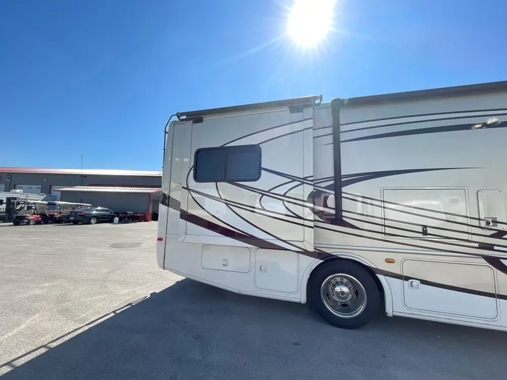 33 feet and it comes equipped with 2 power retractable slide-outs, 2 power