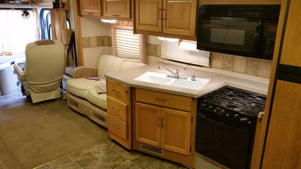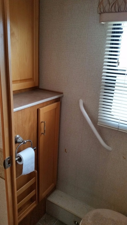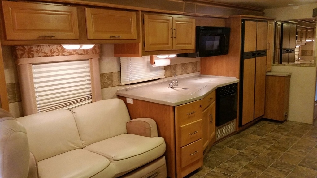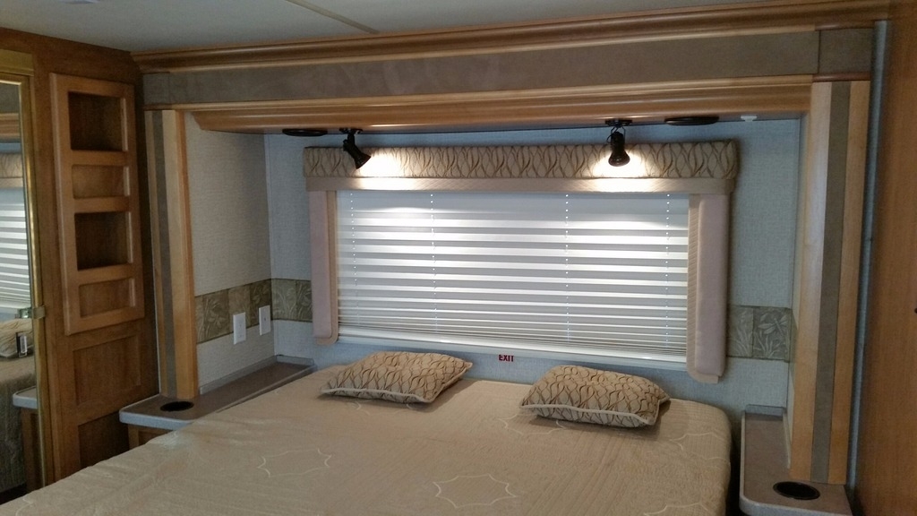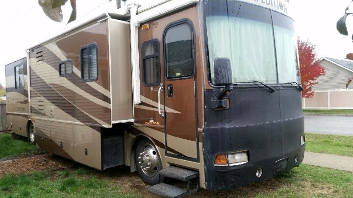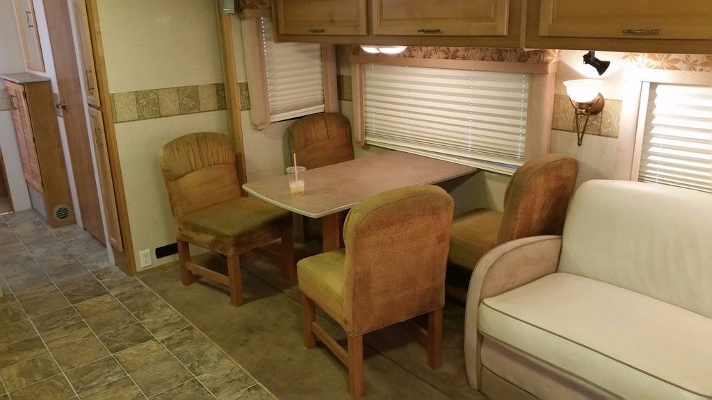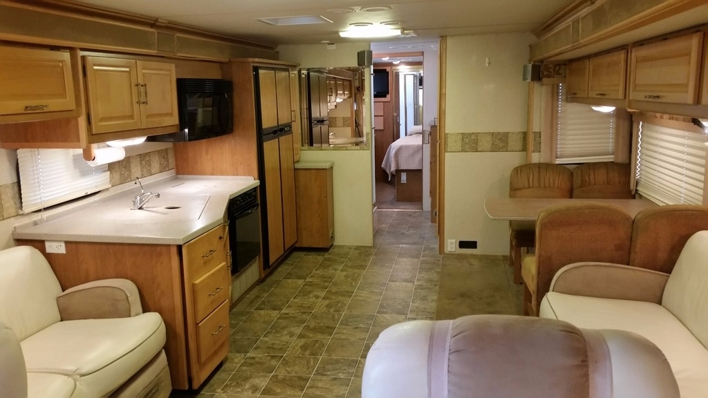 The rear bedroom has a walk in shower and separate toilet room. The bedroom has nice queen size tempurpedic mattress. There is a hidabed in one of the couches. The Captain’s chairs in cockpit swivel around and have electric footrests. The entertainment system throughout the RV includes a flat screen TV, CD/Stereo, and a Satellite Dish. It comes equipped with a Factory exhaust brake and tires are in great shape. The motor home isn't in perfect mint condition but is really nice.