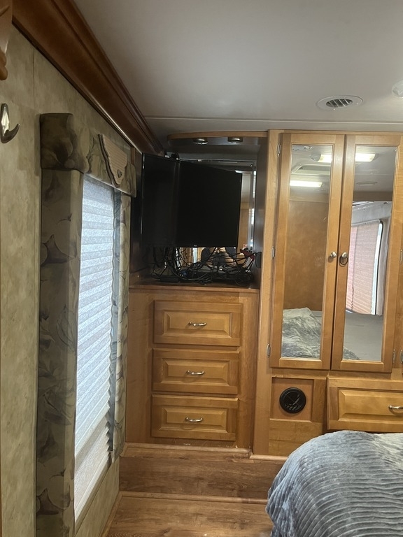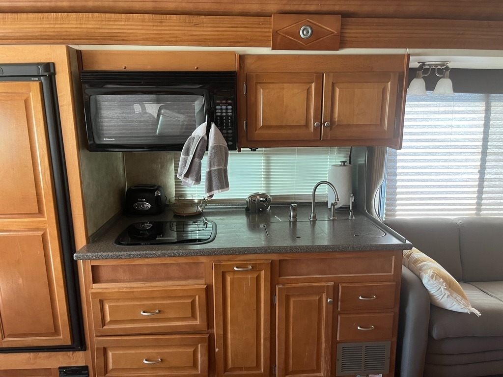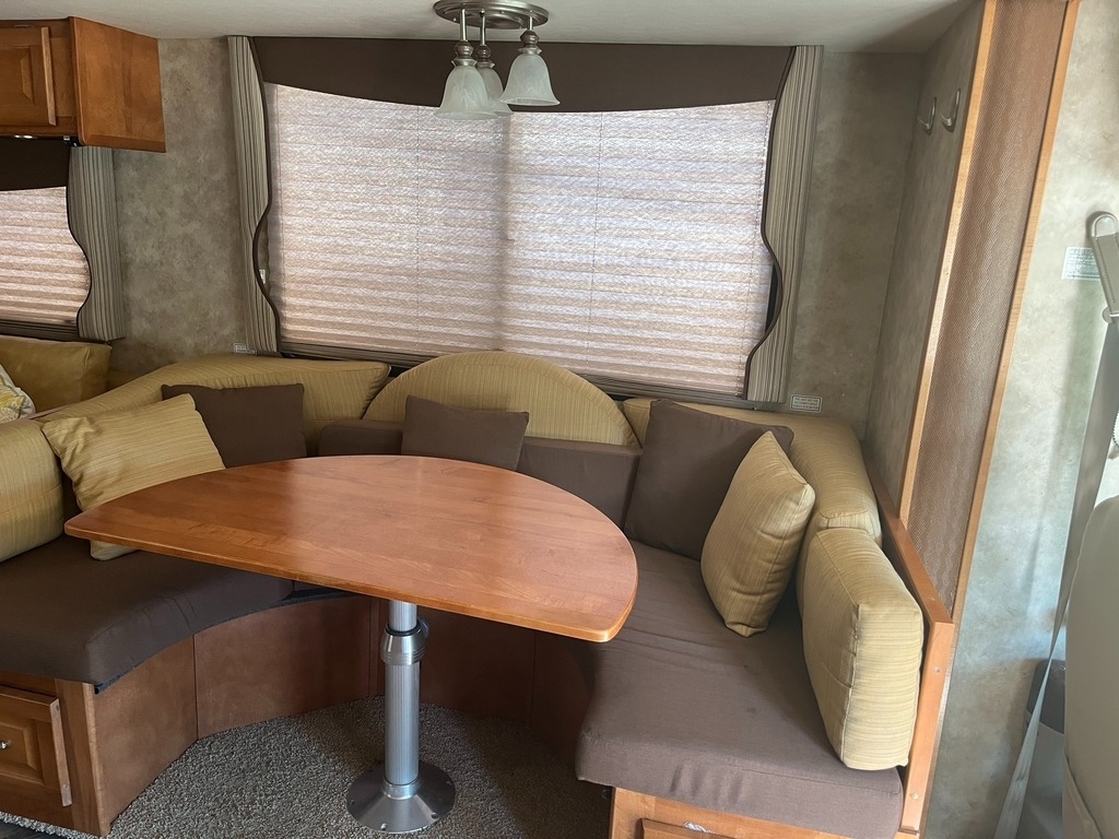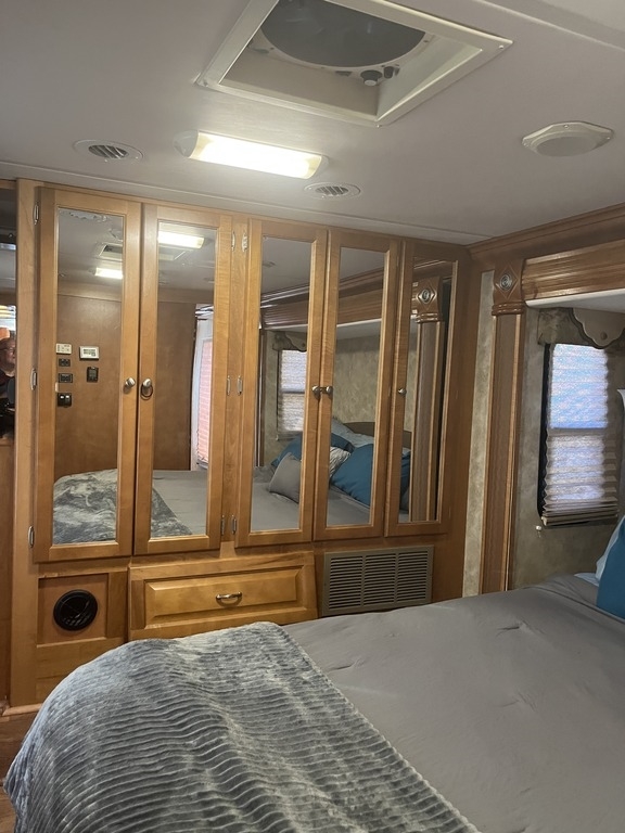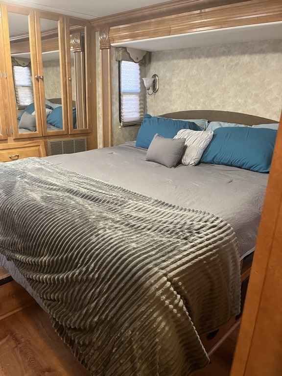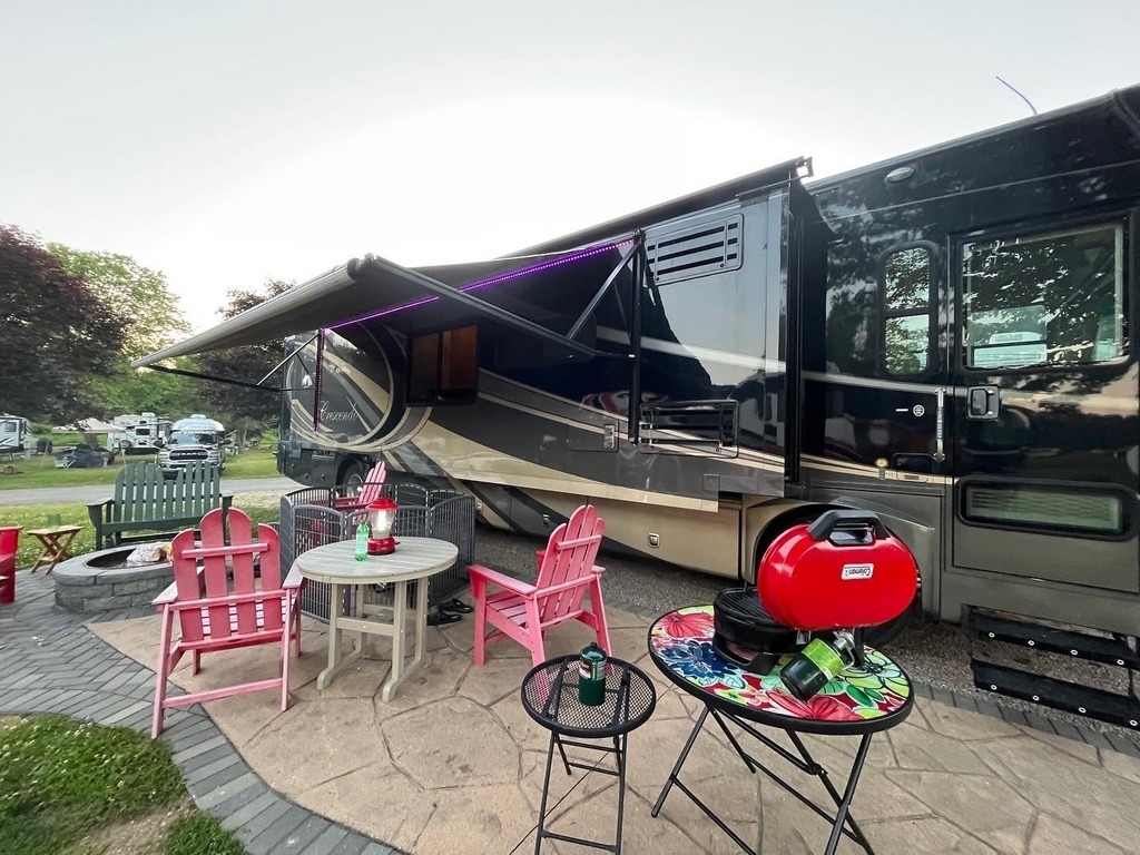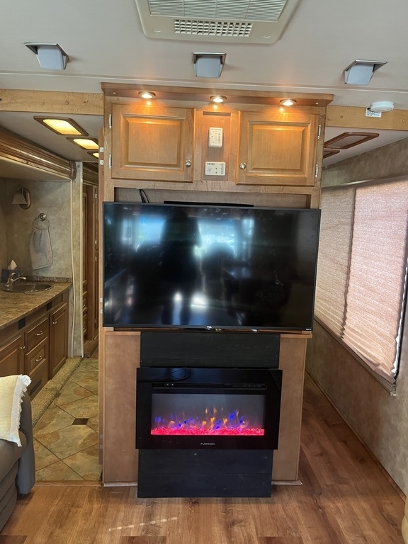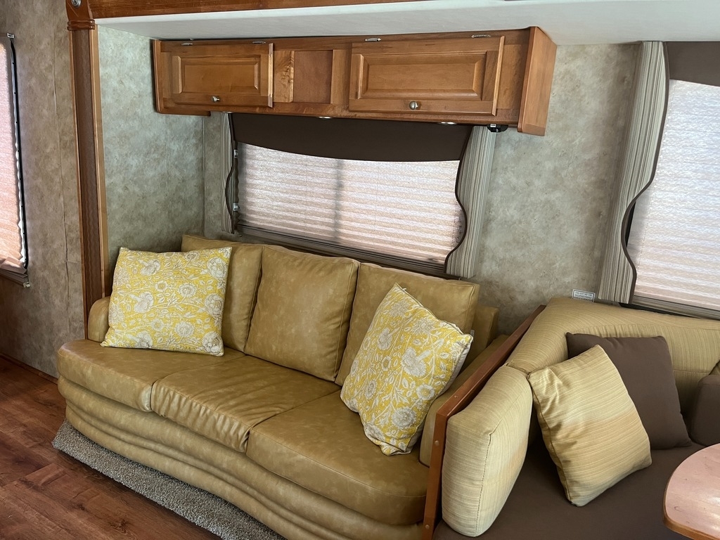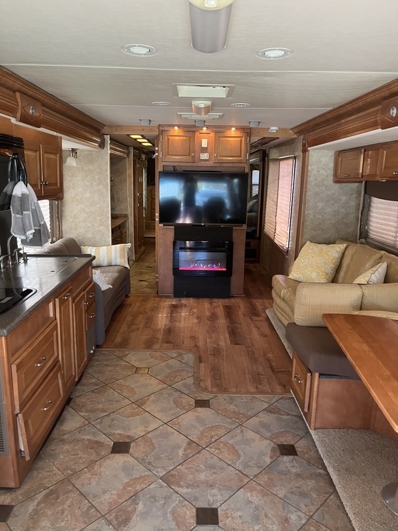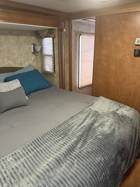 This 2008 Gulf Stream Crescendo 40 K Class A Motorhome is 41.92 feet long and comes equipped with three slide outs, a patio awning, two air conditioning units. The King Bed, reupholstered sofas, and dinette can sleep 8 people comfortably. This RV sits on a Freightliner chassis and is powered by a Cummins diesel pusher engine. It’s summer and fall is around the corner- the best time to camp. Imagine getting away with this beautiful coach.