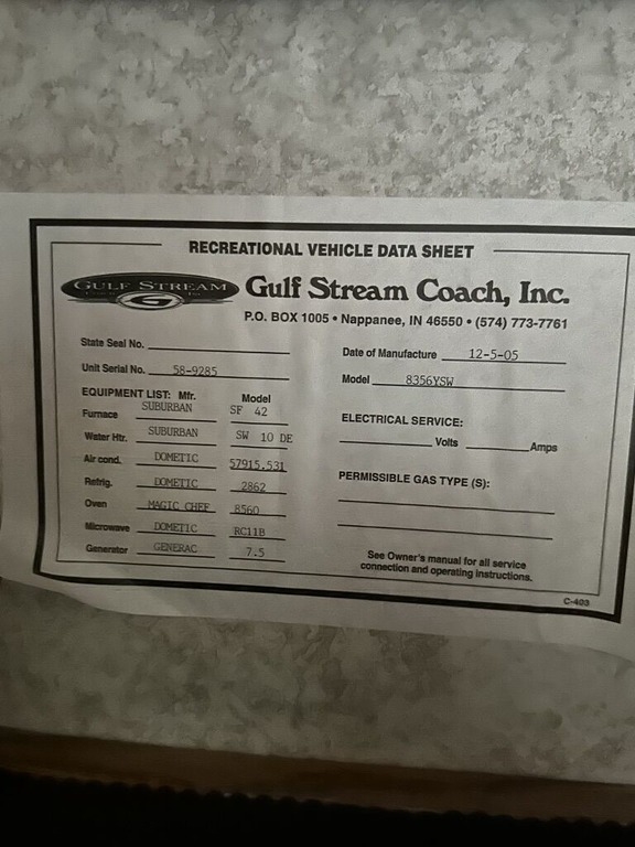 “For sale is a 2006 Gulf Stream Yellowstone 8356 Class A Diesel motorhome, a well-maintained 39’ coach with only 21,326 original miles on a reliable Caterpillar diesel engine paired with an Allison transmission. This rig includes a 10,000lb tow package and sleeps up to 6 comfortably. It’s equipped with a powerful Guardian 7,500-watt diesel generator and features two slide-outs for spacious living. The exterior is in excellent shape, with fresh paint and decals completed in May 2023, and new slide-out and awning canvas installed in May 2024. The roof was also resealed in May 2024 for added peace of mind. It rides on 255/70R22.5 Toyo M154 tires with only 2,000 miles on them over the past three years. All six batteries—four coach and two chassis—were replaced in March 2023. This coach has been gently used for weekend travel ball trips around Utah and Idaho; it’s ready for the next chapter and more great memories on the road!”