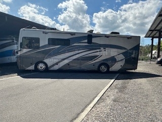 This Holiday Rambler is powered by a 6.7L I6 diesel engine and a 6-speed automatic transmission with 19,051 miles. The overall length is 35.33 feet and it comes equipped with 3 power retractable slide-outs, 2 power retractable awnings, 2 A/C units, a generator, an outdoor entertainment system, and plenty of room to sleep 6. This unit has been well-maintained.
