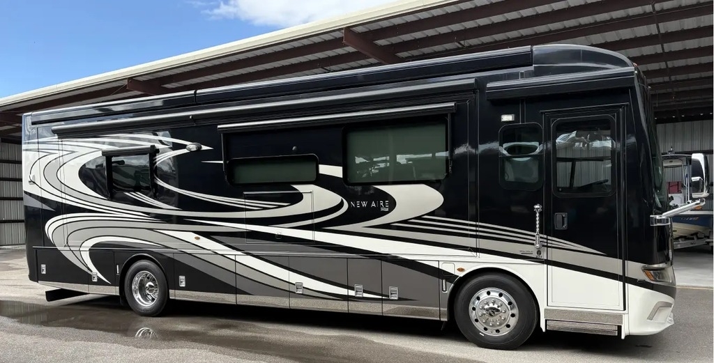 “For sale is a 2020 Newmar New Aire 3543 Class A Diesel Motorhome in excellent condition. This luxury coach has been meticulously maintained, always stored under cover when not in use, and recently fitted with six brand-new tires. Built on a sturdy Freightliner chassis and powered by a diesel engine with an 8.0kW Onan diesel generator, this coach is ready for long, comfortable journeys. Inside, you’ll find heated porcelain tile floors throughout the main living areas, rich finishes, and exceptional craftsmanship Newmar is known for. The Comfort Drive Steering System delivers smooth, SUV-like handling for an effortless driving experience. This is an all-electric coach featuring a Hydronic Zone Diesel Heat system, providing continuous hot water and efficient heating. This sale includes everything you need to hit the road today. You’ll receive high-quality dishes, silverware, cookware, two 50-amp extension cords, and all essential RV accessories purchased for the coach. No last-minute shopping required—just load your clothes and go. A truly exceptional, well-cared-for New Aire that combines performance, luxury, and practicality in one beautiful coach. Ready for immediate travel and enjoyment.”