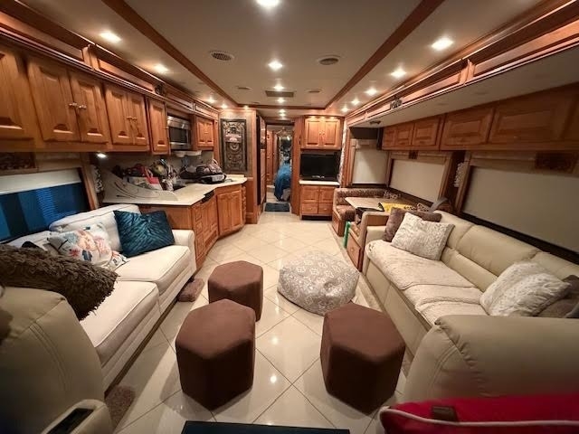 interior with multiple slide-outs, a well-appointed kitchen, comfortable