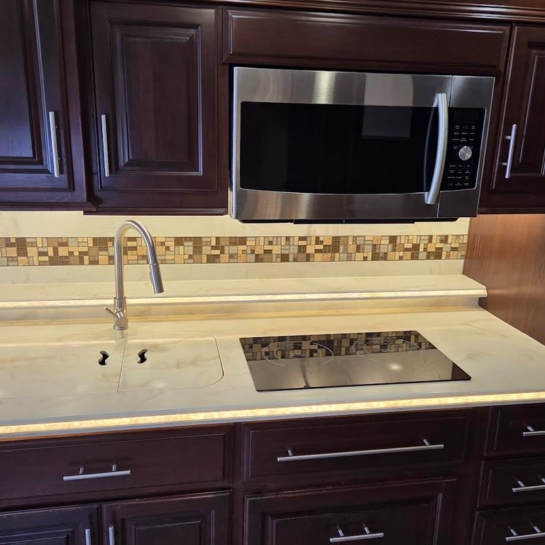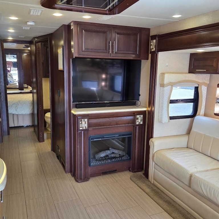 awning, 2 A/C units, a generator, a fireplace, outdoor entertainment, and room
