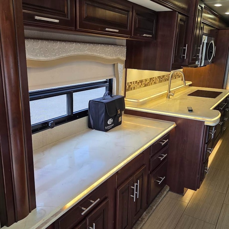 This Entegra is powered by an 8.9L I6 diesel engine and a 6-speed