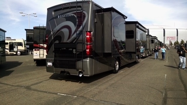 This 2018 Thor Motor Coach Venetian Class A Motorhome is 37.92 feet long and comes equipped with four slide outs, three awnings, two air conditioning units, and can sleep eight people comfortably. This coach is powered by a 400 HP Cummins diesel engine paired with a 6-speed Allison automatic transmission and sits on a Freightliner chassis. This stunning mix of beauty, power, comfort & fuel economy is perfect for the buyer who wants it all for an affordable price.