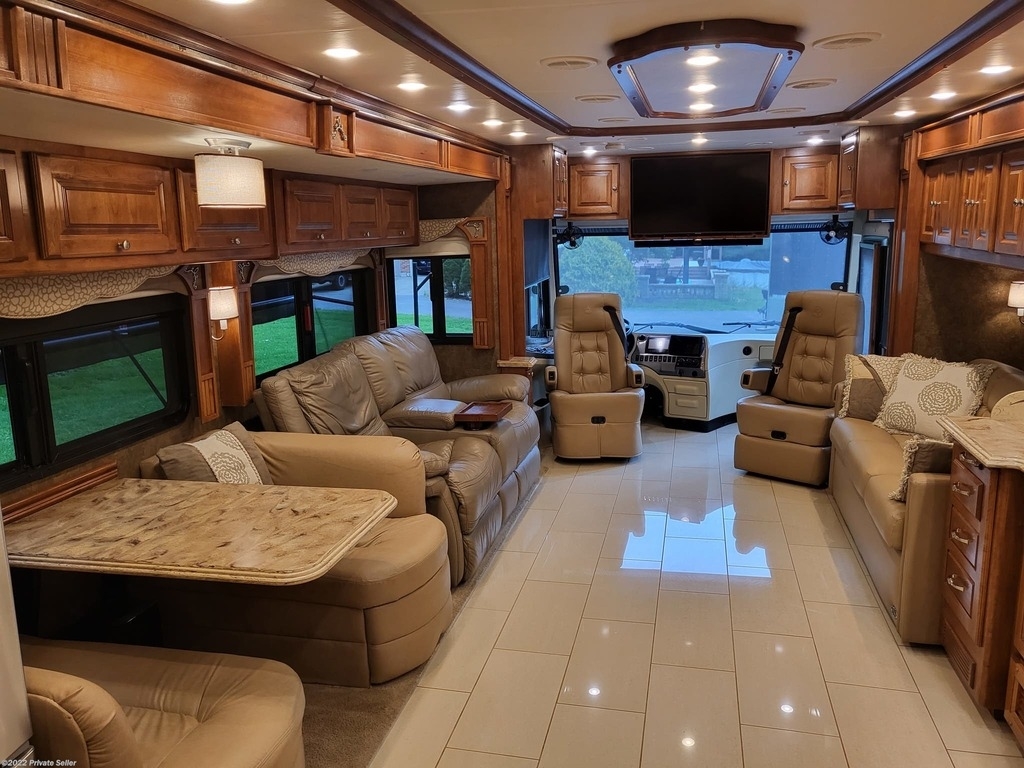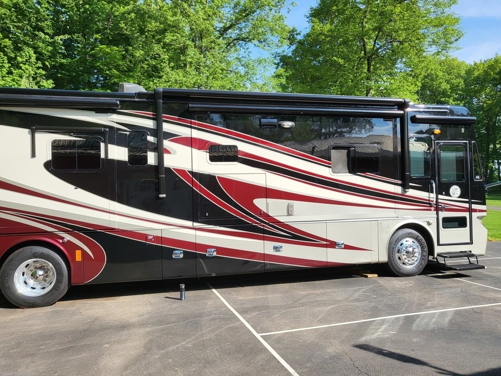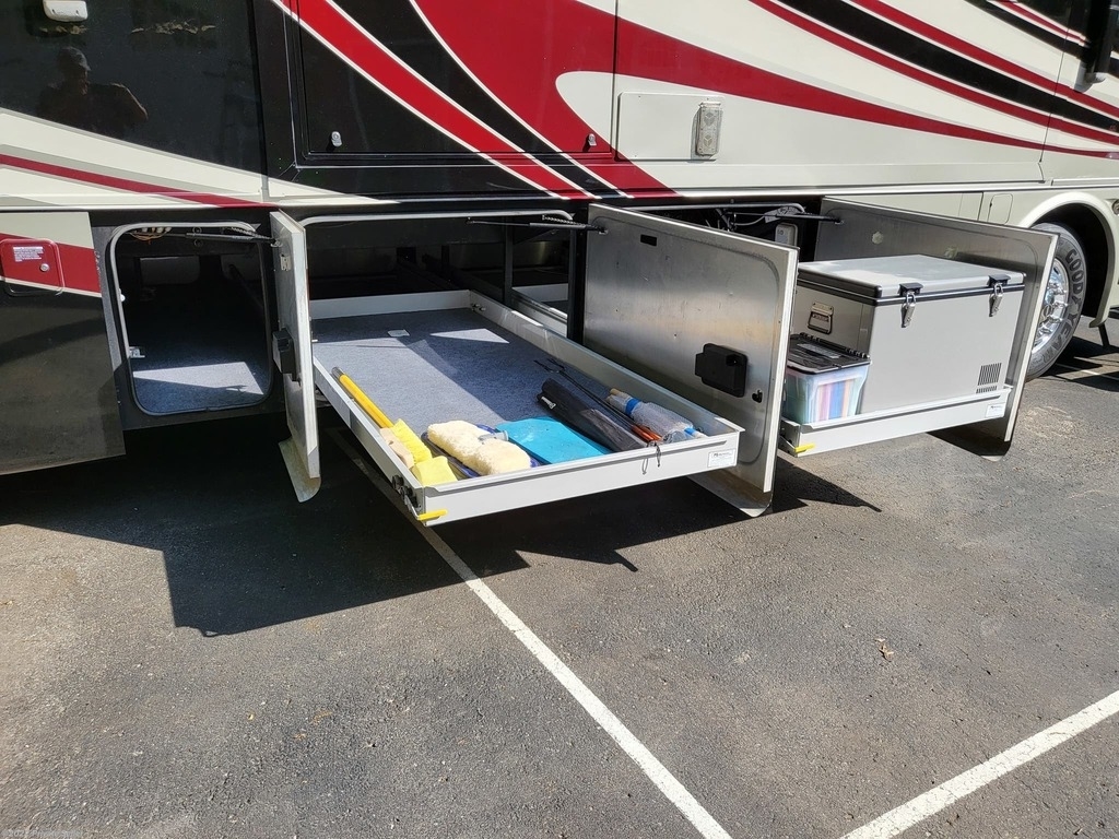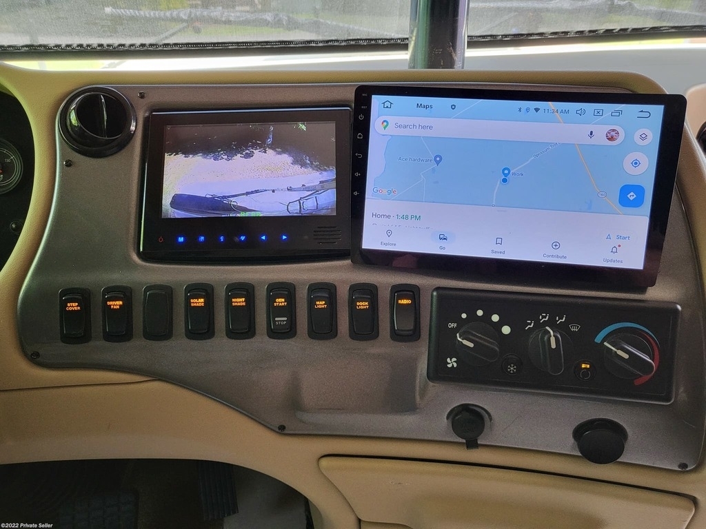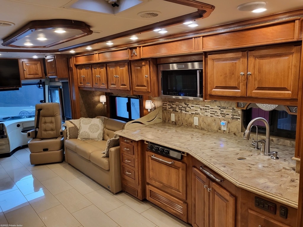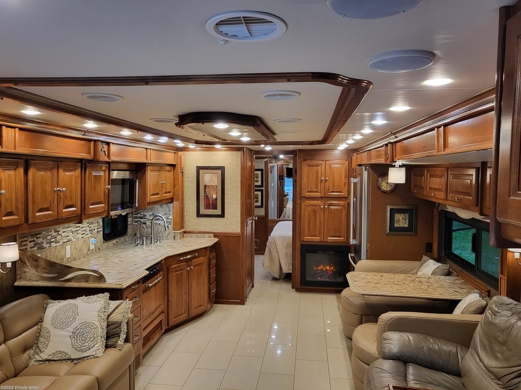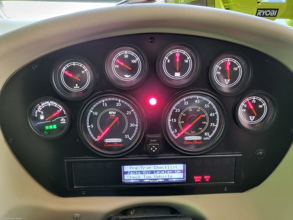 Very well-kept Coach! Many upgrades. Tires 1 year old New Tire Covers, New Coach batteries (3 mo. old) (6 AGM batteries), 2000 watt power inverter, Power Watchdog Surge Protector with Bluetooth and Emergency Shut Down - 50 Amp, 10 KW Onan Generator with auto start, Keyless entry, Maytag Residential 2 door fridge with bottom freezer, ice and water in the door, 3 Rooftop heat pump/AC units, 2 Propane furnaces, 3 upgraded HD TVs 43in. (1 outside), Sound bar with sub wolfer, Winegard Traveler auto satellite TV system, Pepwave Internet system (Sim card or local Wi-Fi), Extra Chest Freezer in storage bay, UV water filter system, Engine fire suppression system, Windshield and driver’s window Magna Shades, Awning extension shade, Tire pressure monitor system, Upgraded in dash radio/nav system with 10in. touch screen, Engine computer monitoring system, Electric Fireplace with heat, Leather love seat power recliners with storage, King bed with upgraded pillow top mattress, Upgraded KitchenAid convection microwave oven, Central Vac, Stack washer and dryer (2yrs old), Drawer Dishwasher, Extra Filtered water at kitchen sink, See through window awnings, Wi-Fi remote door lock, Roadmaster Sterling All Terrain tow system with rockgard, Blue Ox Patriot tow Brake System.
