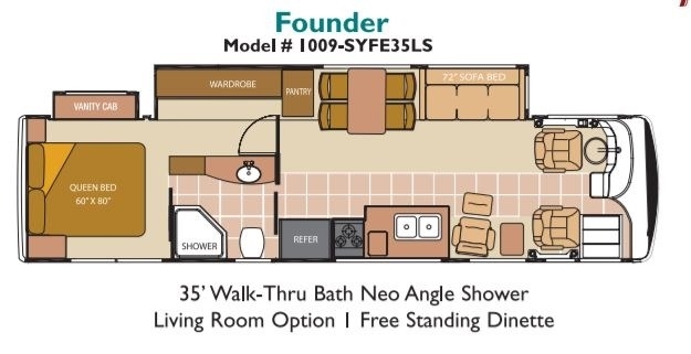This 2007 Alfa SeeYa So Long Founder Edition M-1009 is powered by a Cummins ISB 300HP 5.9L Diesel Engine combined with a 5-speed Allison Automatic Transmission on a Freightliner XC Chassis, with 59,000 Miles. The overall length is 35 feet and this RV comes equipped with a 7.5 kW Diesel Generator, 2 Slide Outs, a One Touch Automatic Electric Awning w/ Remote, 1 Ducted A/C unit and plenty of room to sleep 4-6.