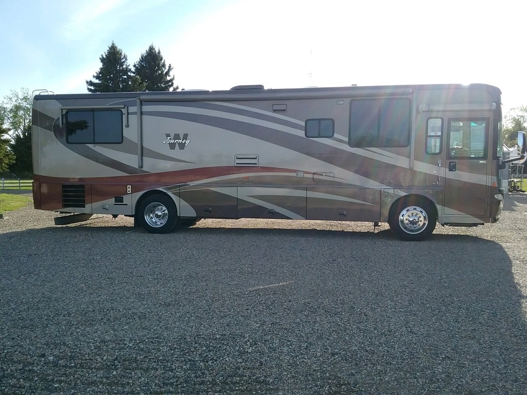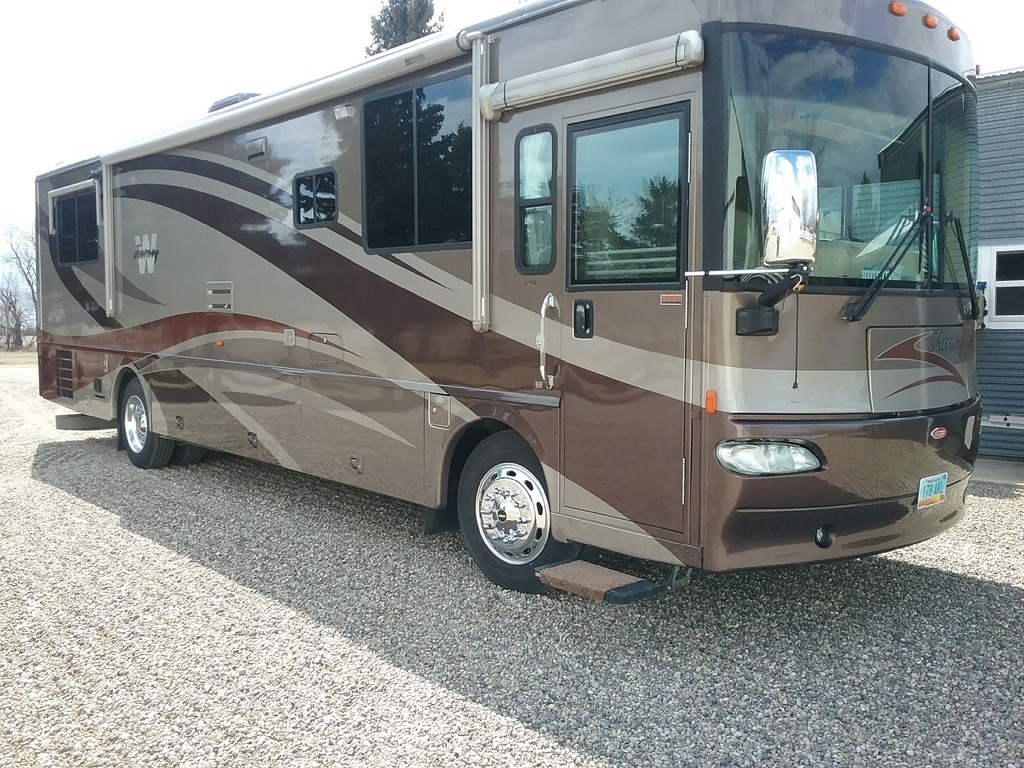 This 2006 Winnebago is powered by a 350-HP Caterpillar Diesel Engine paired with a 6-speed Automatic Transmission on a Freightliner Chassis, with 82,000 Miles. The overall length is 36feet and comes equipped with a 7500 Watt Cummins Generator, 2 Slide Outs, 1 Awning, 1 A/C unit and plenty of room to sleep 6. This is a non-pet/non-smoking RV and there is no water damage.
