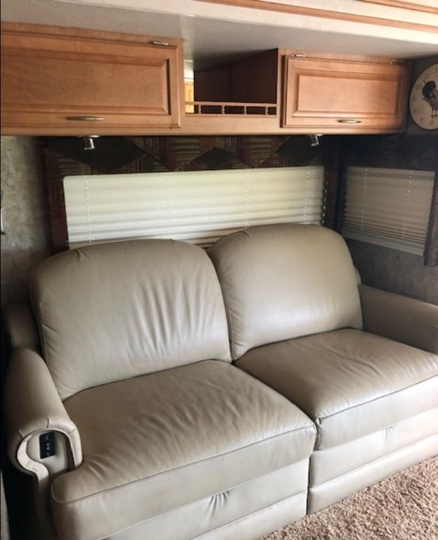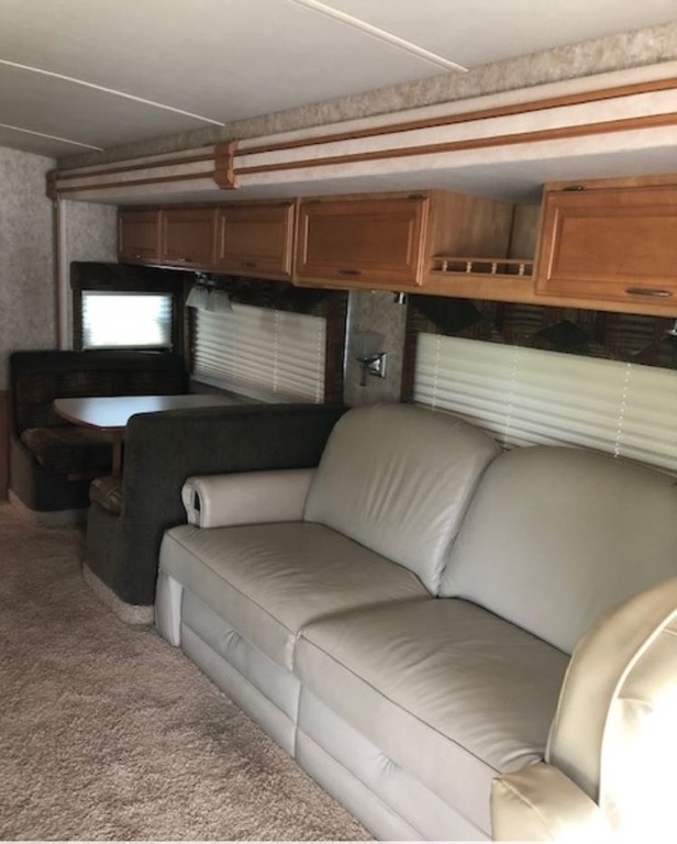 This 2007 Winnebago Journey is powered by a Caterpillar 7.2 L 350HP Turbo Diesel Pusher Engine combined with an Allison 6-speed Automatic Transmission on a Custom Freightliner Chassis, with only 68,614 Miles. The overall length is 36 feet and comes equipped with an Onan 8kW Diesel Generator, 2 Slide Outs, 2 Power Awnings, Tue Air Residential Central A/C, and plenty of room to sleep 6.