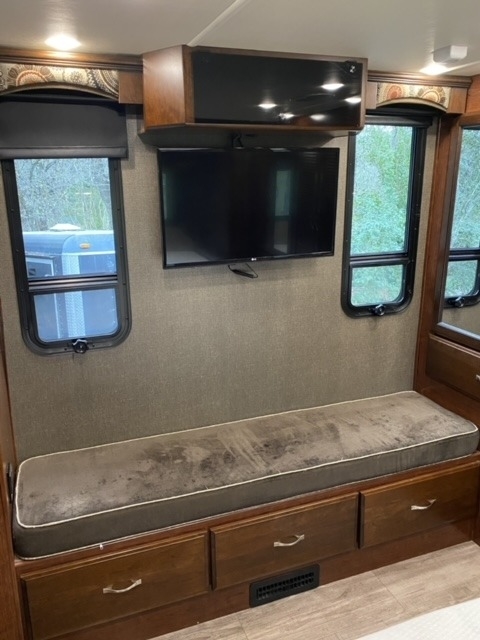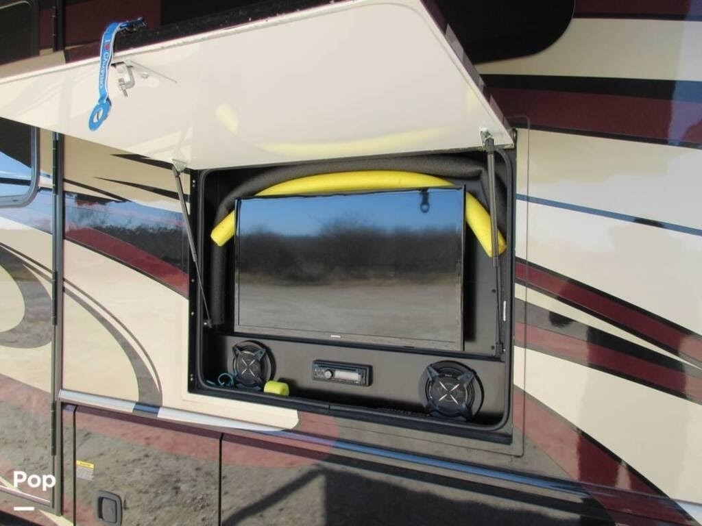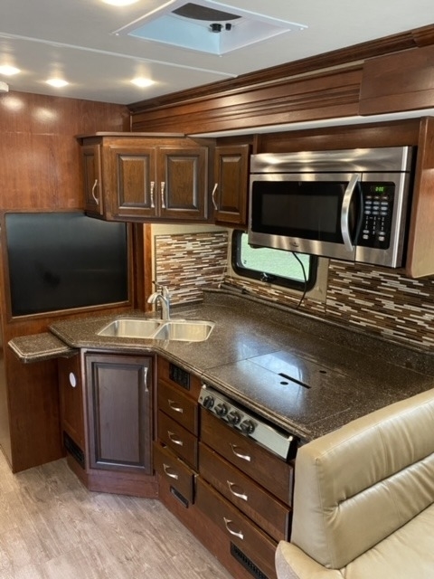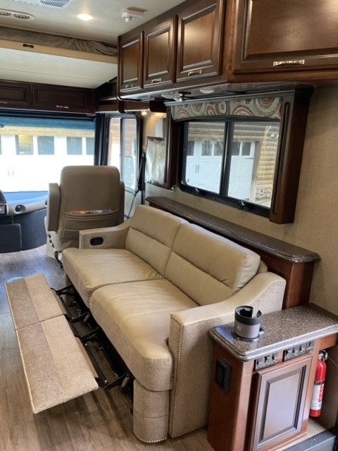 equipped with 2 power retractable slide-outs, a 17-foot power retractable